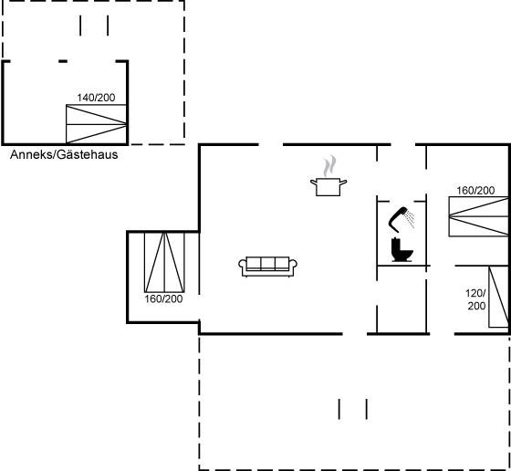 Der er i alt 4 soveværelser. Sovepladserne fordeler sig på: 6 sovepladser i dobbeltsenge. 1 soveplads i enkeltseng. 2 af disse sovepladser befinder sig i anneks.