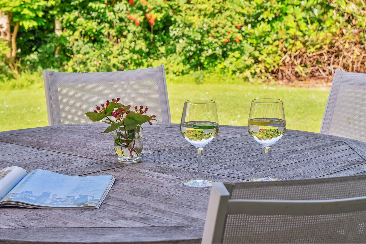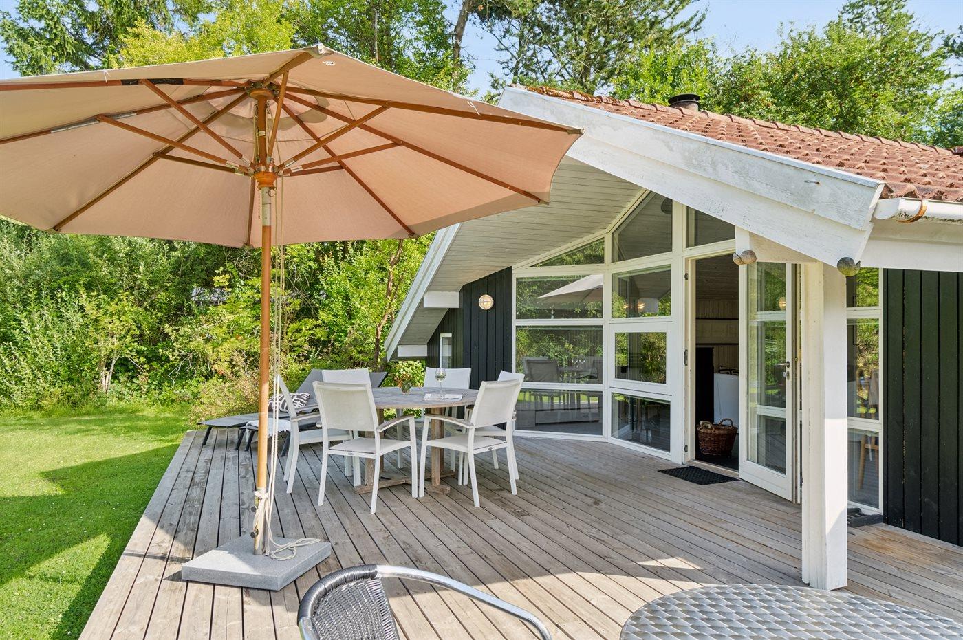 Ferieboligen er beliggende på en 1282 m² stor havegrund. Der er 350 m til havet. Nærmeste forretning er beliggende i en afstand af 1700 m. Til ferieboligen hører 33 m² terrasseareal. Desuden er der 19 m² overdækket terrasse. Der er redskabsrum. Der er carport til rådighed. Parkering ved ferieboligen.