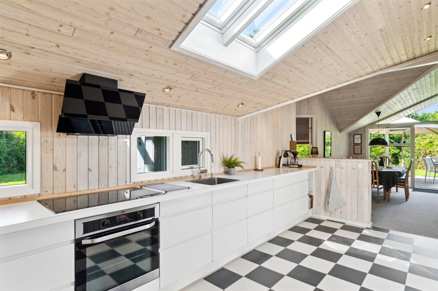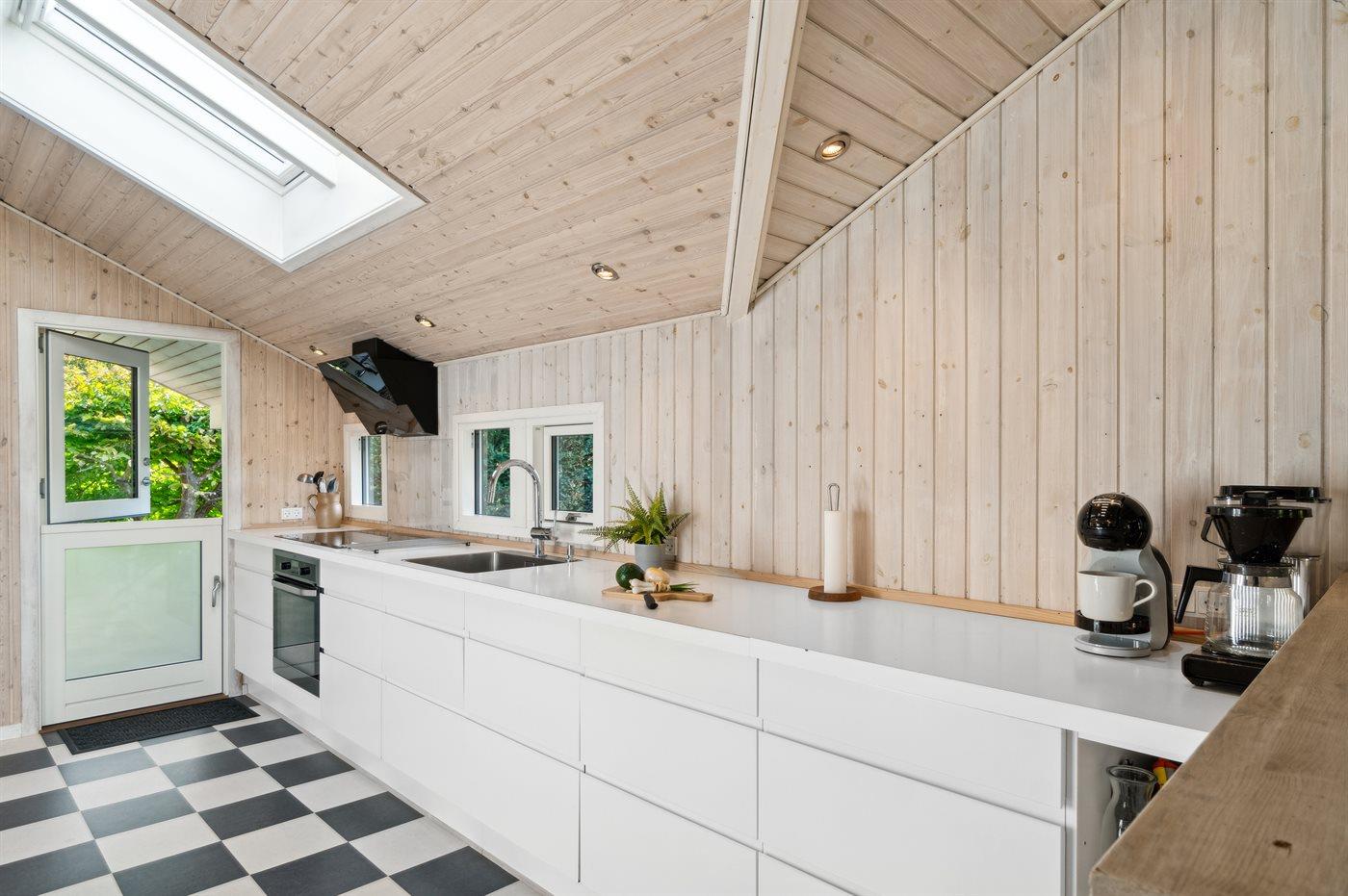 Køkkenet er udstyret med 1 køleskab. Der er 4 induktionskogeplader, bageovn, varmluftovn, mikrobølgeovn samt opvaskemaskine.