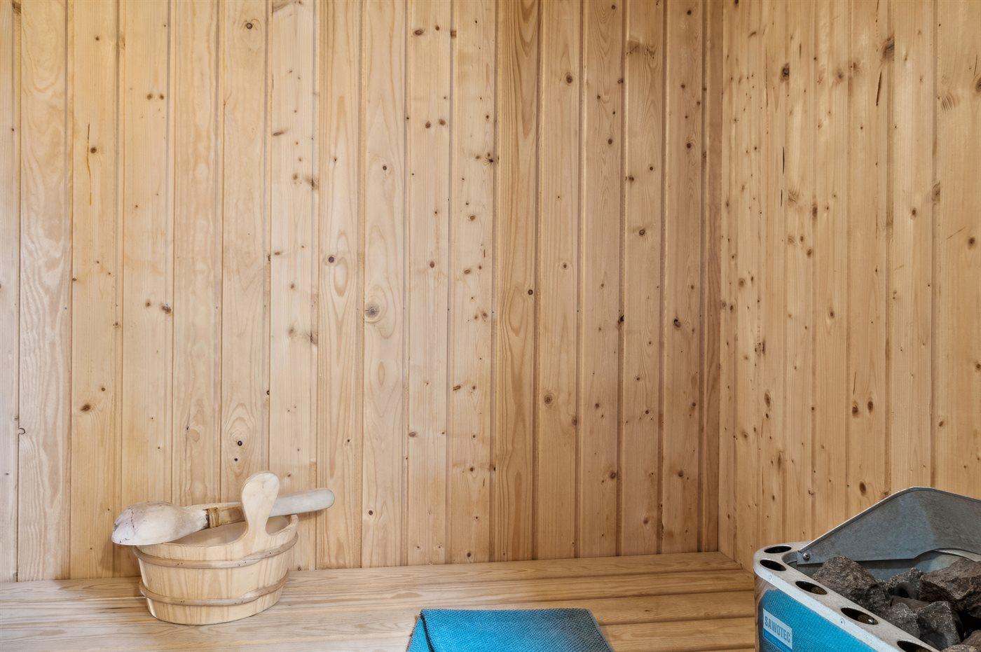 Der er 1 badeværelse med bruseniche og 1 toilet. I saunaen er der mulighed for afslapning.