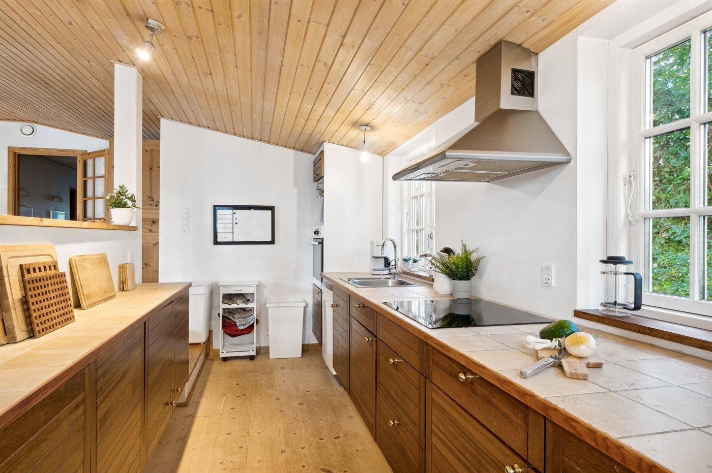 Køkkenet er udstyret med 1 køleskab. Der er 4 induktionskogeplader, varmluftovn, mikrobølgeovn samt opvaskemaskine Der er gulvvarme i køkkenet.