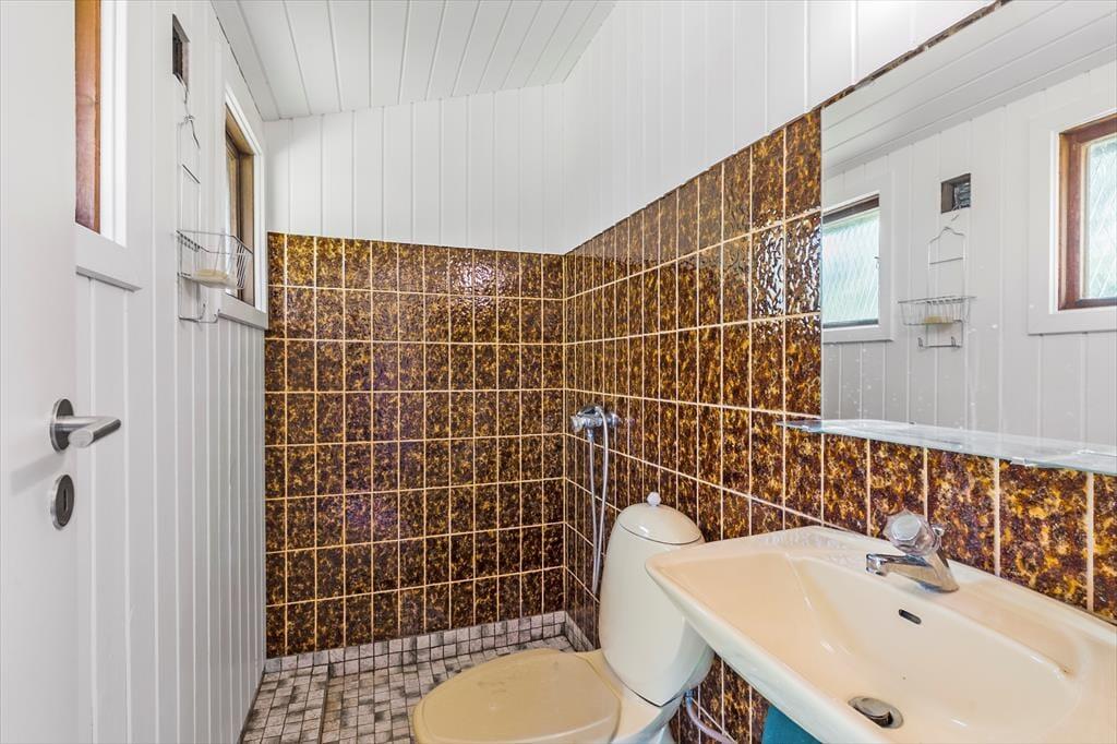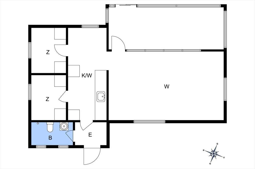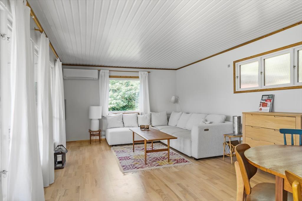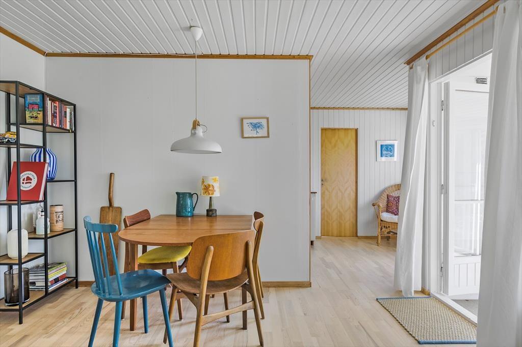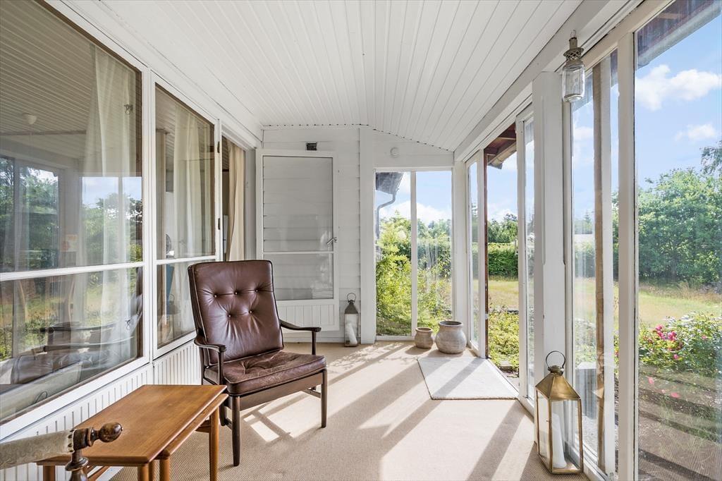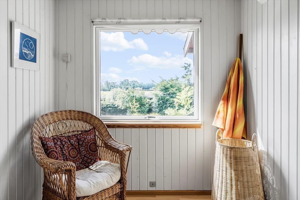 I det charmerende sommerhus er der et lille køkken, hvor der er en spiseplads i forlængelse. Her har du også de to soveværelser og husets badeværelse. Fra køkkenet går man ind i stuen, hvor der er en stor sofa, hvor hele familien kan samles. Fra stuen er der mulighed for at gå ud i havestuen, som på de lune aftener er rigtig dejlig at sidde i.