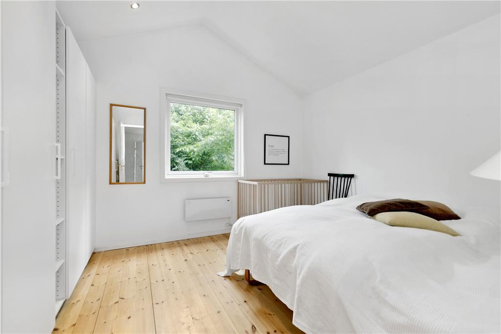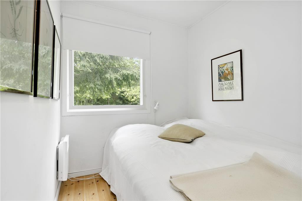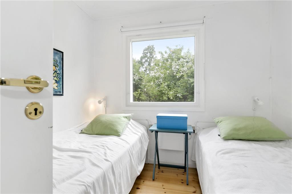 Sommerhuset har et stort soveværelse med dobbeltseng og barneseng, samt rigelig plads til opbevaring af tøj i de mange klædeskabe. Derudover er der et andet soveværelse med dobbeltseng og et tredje soveværelse med to enkeltsenge og skabe, perfekt til både børn og voksne.