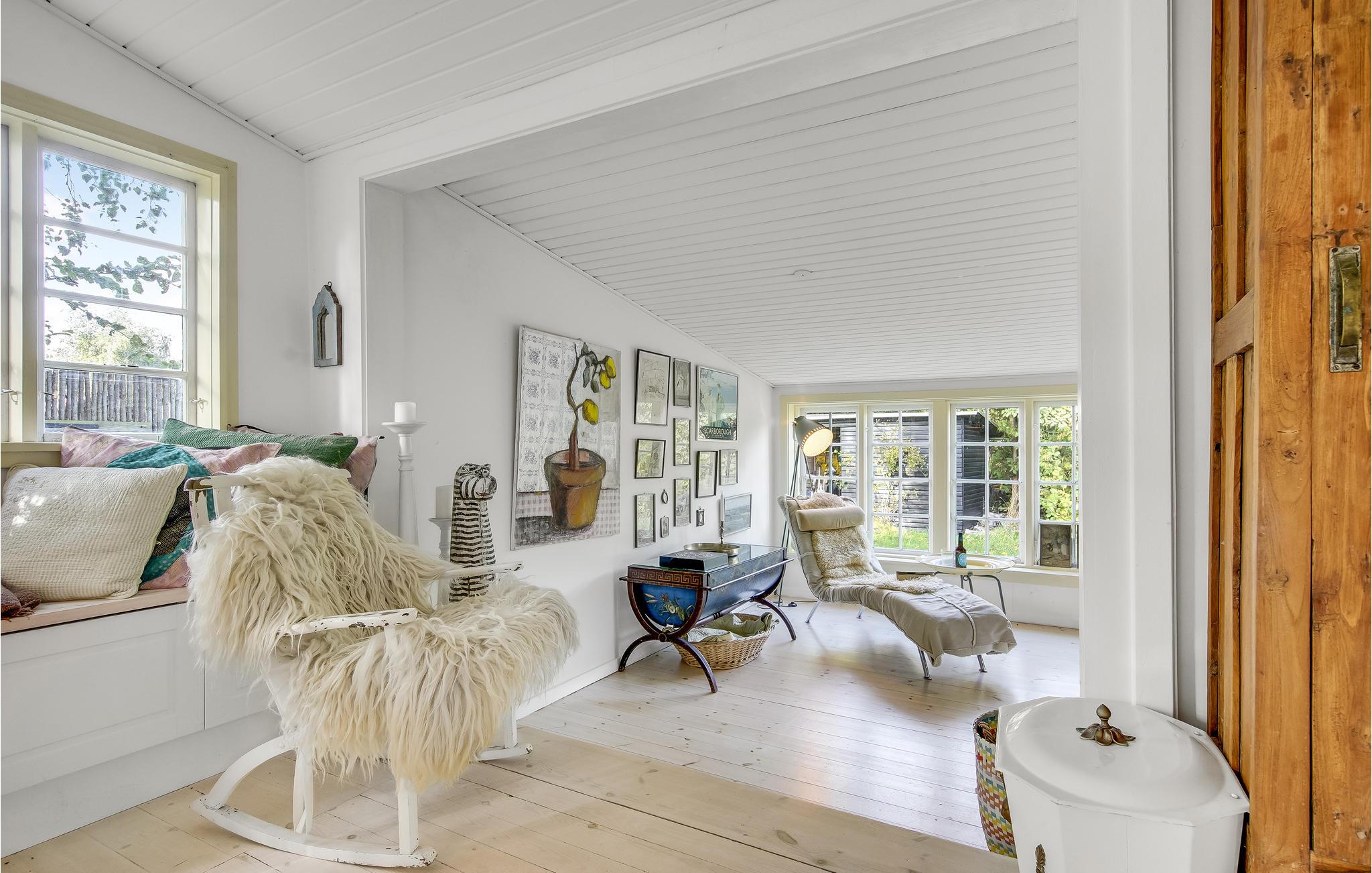 Hjertet i huset er det omhyggeligt indrettede opholdsområde, hvor I kan læse eller tilbringe hyggelige stunder og filmaftener sammen til de knitrende flammer i brændeovnen. Soveværelserne, hvoraf det ene er i annekset, er alle udstyret med dobbeltsenge.
