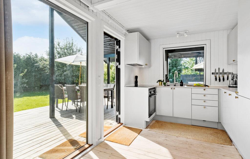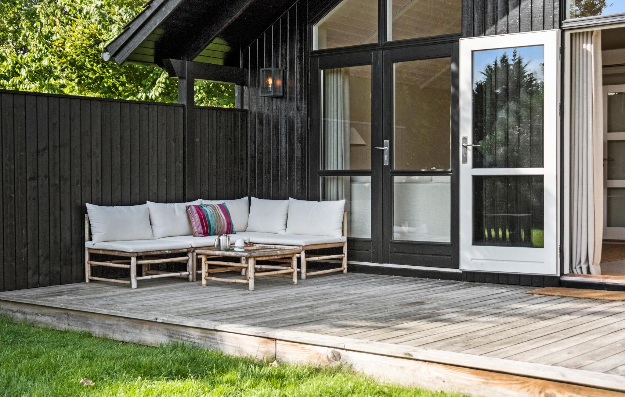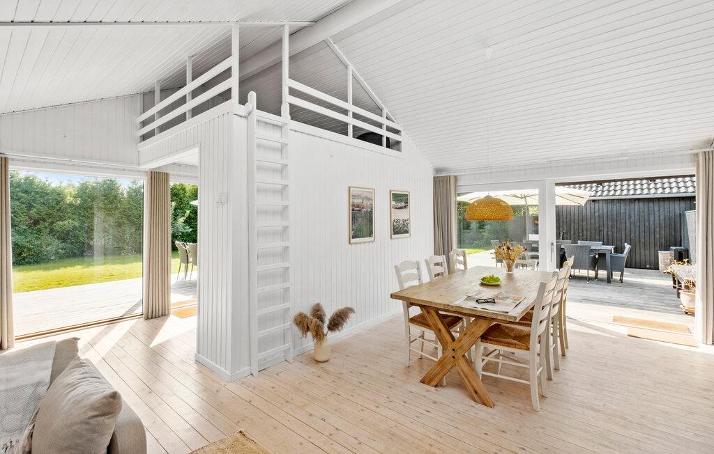 Huset er hyggeligt indrettet i klassisk dansk sommerhusstil og byder på fem soveværelser til op mod otte personer. Nogle af værelserne er placeret i den originale hovedbygning, mens andre ligger i den moderne tilbygning, så her er plads til to familier, der både får rig mulighed for fælles hygge samt mulighed for at dele sig op.