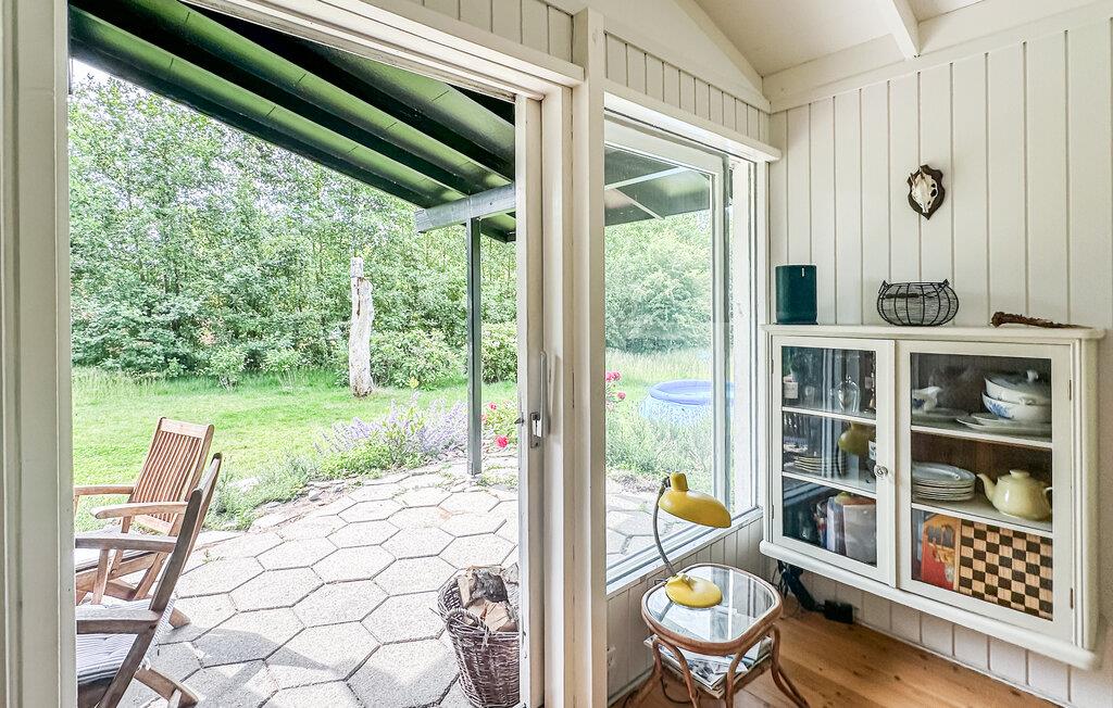 Glæd jer til en afslappende familieferie i dette indbydende sommerhus. Her kan I se frem til nogle fredfyldte dage i de skønneste rammer. Den lyse stue bliver omdrejningspunktet for jeres samvær. Her kan I nyde de fine indretningsdetaljer, som kombinerer moderne træk i form af møblerne og de lyse vægge sammen med husets fine trægulv og den integrerede pejs.