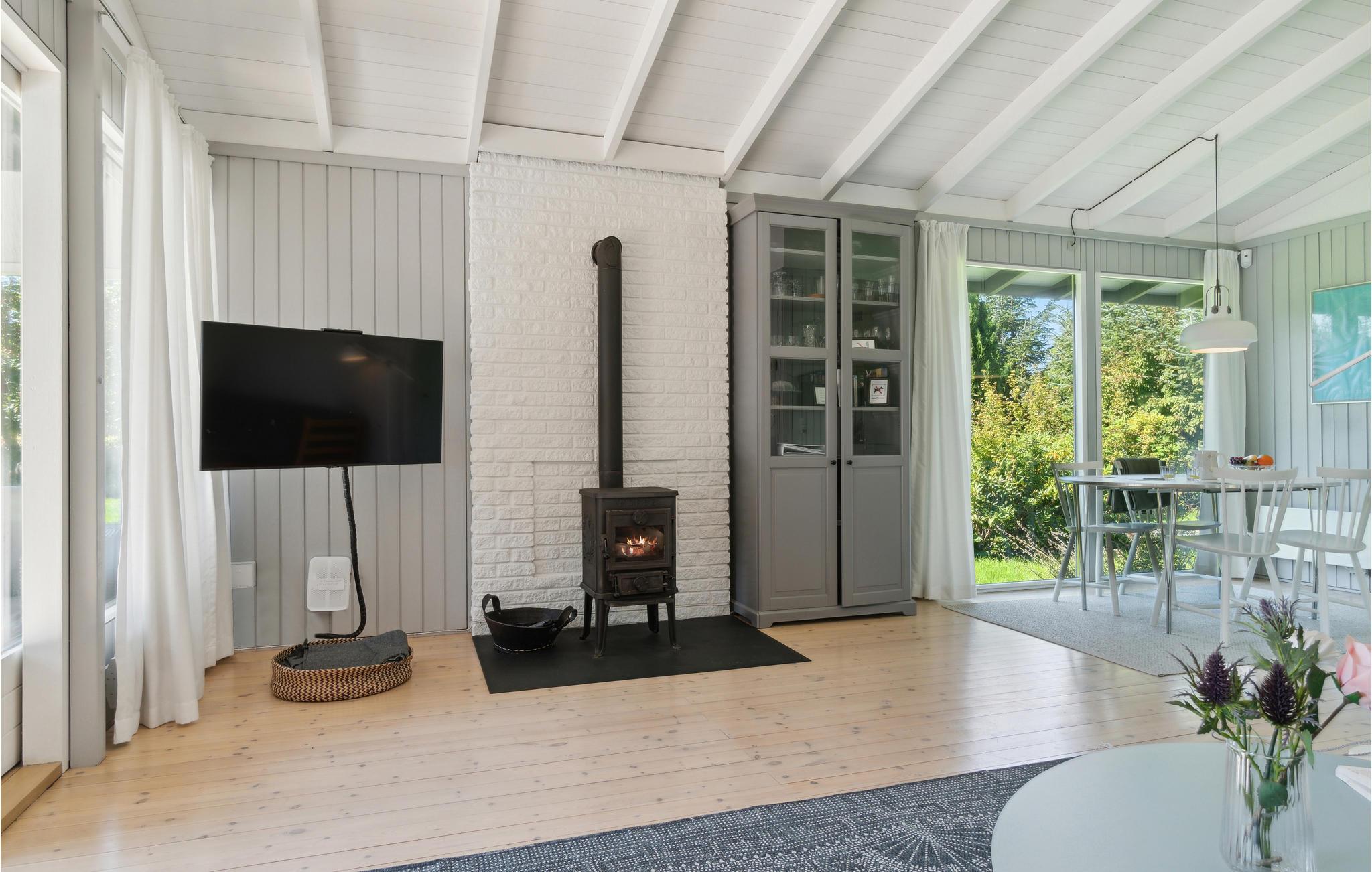 Dette gennemrenoverede og smagfuldt indrettede sommerhus ligger på en lille sommerhusvej i Tisvildeleje. Nær vandet, Tisvildeleje by og skoven. Grunden er virkelig god med plads til leg, fodbold og samvær og med sol hele dagen. Huset er holdt i sommerlige hvide og grå farvetoner, med flere smukke designermøbler. Huset er 60 m² og er lyst og indbydende med pæne lyse trægulve, store vinduer, opholdsstue med stor spiseafdeling og et dejligt køkken med opvaske- og vaskemaskine, induktionskomfur og køleskab kombineret med fryser. Fra køkkenet er der udgang til en morgenmadsterrasse. Sommerhuset har to soveværelser – et stilfuldt forældresoveværelse og et dejligt ekstra værelse, som både kan bruges af både voksne og børn (de to senge måler hver 1,9 m). I alt er der fire gode sovepladser. Der er stor gas-grill og hyggelig bålplads til mange udendørs stunder. To minutters gang til naturlegeplads og skov. Fem minutters gang til stranden og Kattegat via privat trappe med nøgle til nedgang, så I stort set har hele stranden for jer selv. Det tager syv minutter at cykle til det pulserende cafémiljø i Tisvildeleje hvor der også er bager, købmand, tøjbutikker, restauranter og biograf. Det tager ekstra to minutter, at komme til skoven Tisvilde Hegn.