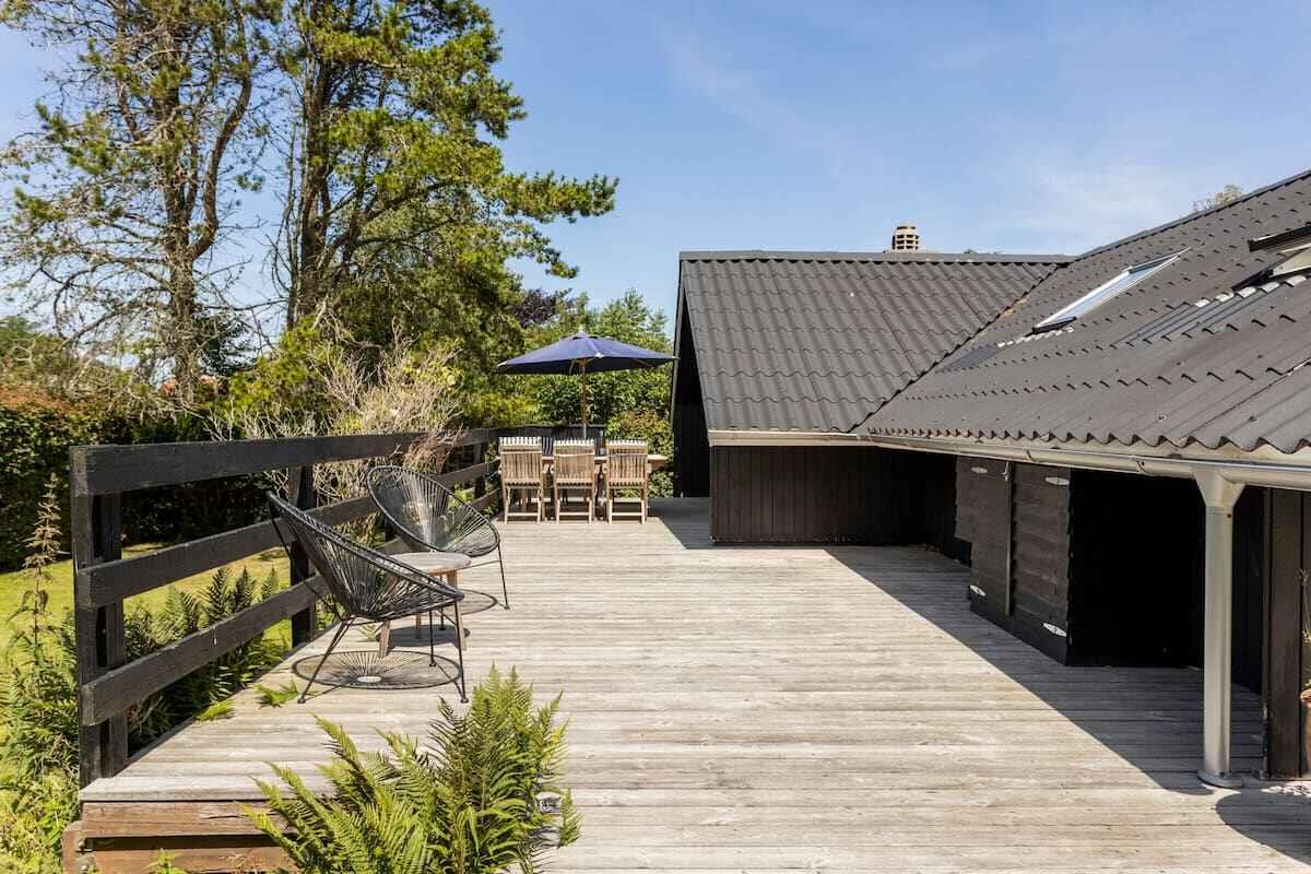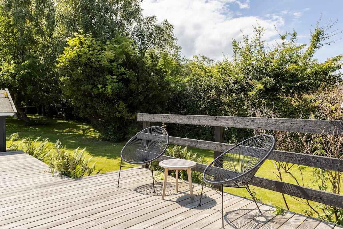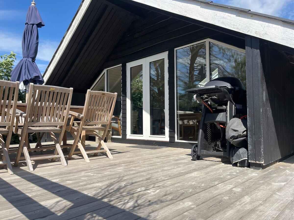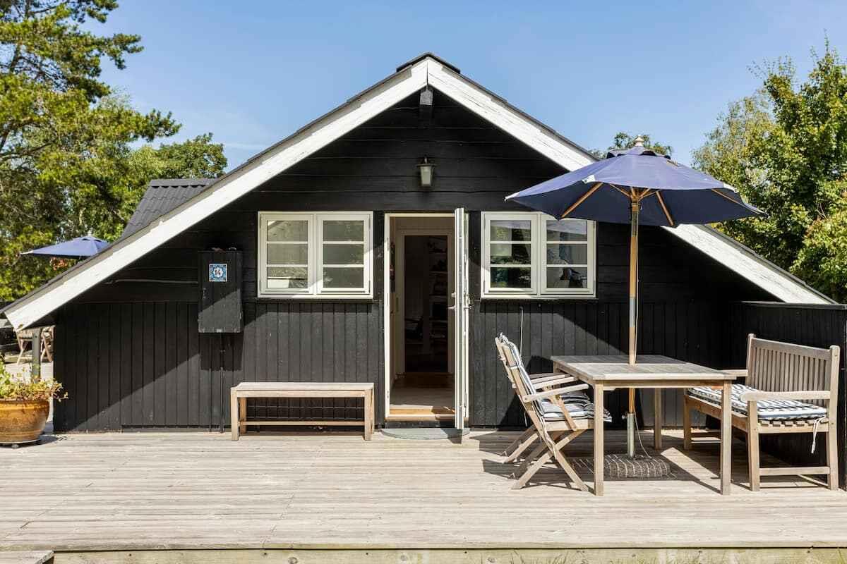 Hyggeligt træsommerhus i Tisvildeleje med stor terrasse tæt på strand, by og skov.