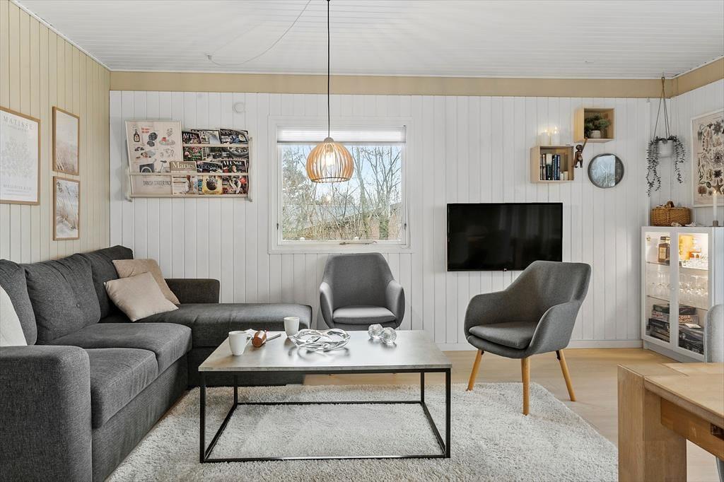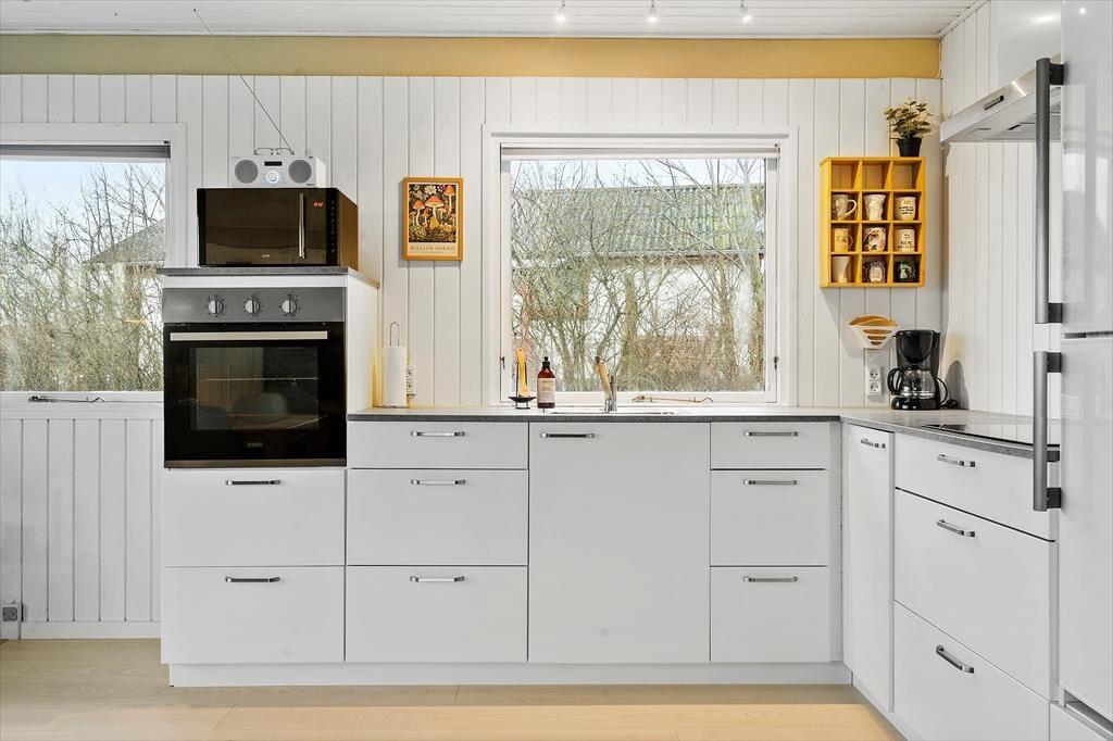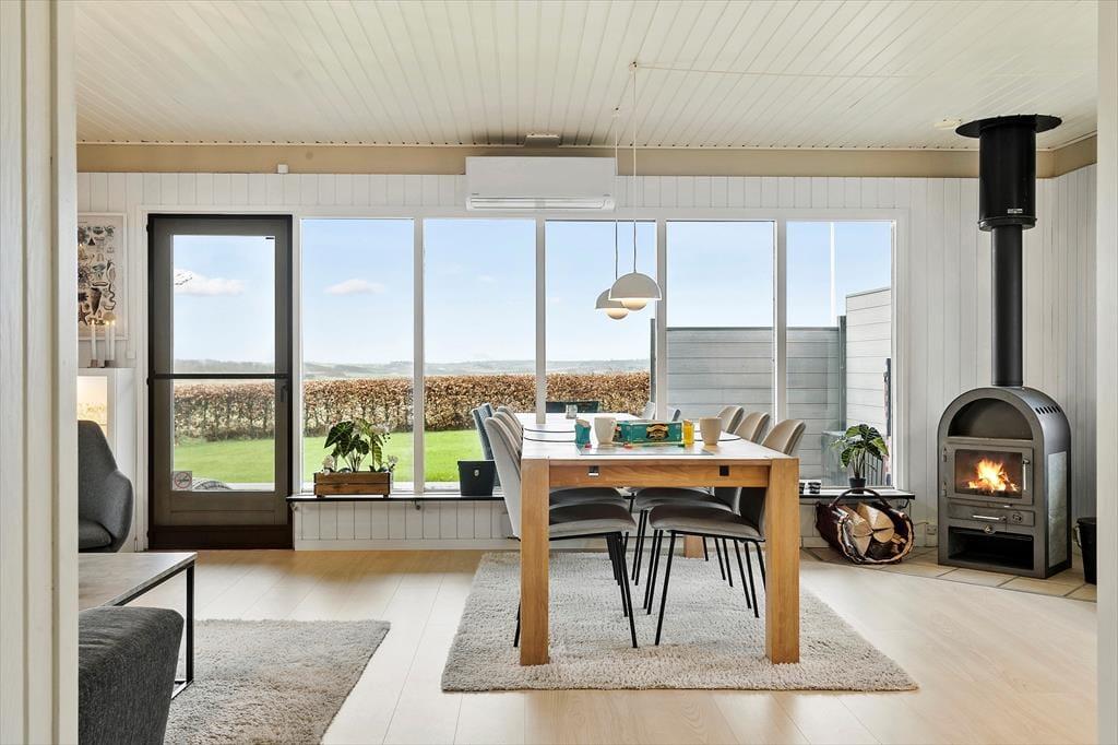 I dette sommerhus bliver du mødt af en varm og indbydende stemning, der straks får dig til at slappe af. Stuen er udstyret med en hyggelig brændeovn, som spreder varme og hygge på de kolde aftener. Du kan se frem til at nyde en kop kaffe foran de knitrende flammer, mens du læser en god bog eller spiller brætspil med familien. Den åbne forbindelse mellem stue og køkken gør det nemt at være sammen, selv når maden skal tilberedes. Husets lyse indretning og store vinduer inviterer naturen indenfor og giver en skøn fornemmelse af ro og rummelighed.