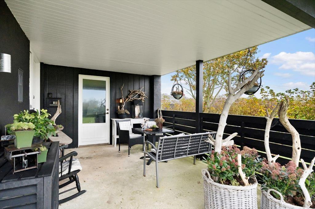 Udelivet kan virkelig nydes på den sydvestvendte terrasse, hvor solen skinner det meste af dagen. Start dagen med morgenkaffe under åben himmel, eller tag en afslappende pause i haven, hvor de mange solrige hjørner indbyder til at lade op. I den store have er der masser af plads til både leg og afslapning, og du har rig mulighed for at finde din egen lille oase – måske med en god bog i solen eller med et hyggeligt spil kongespil på græsset. Når aftenen falder på, kan du grille og samle familien til et lækkert måltid på terrassen, mens solen går ned over Toftum Bjerge.