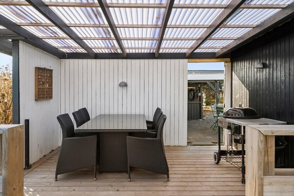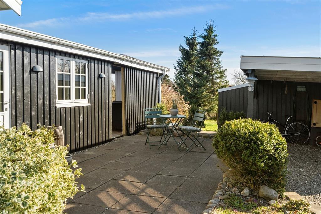 Når solen står højt på himlen, er det tid til at tage udendørs og nyde livet i haven. Den store terrasse og den dejlige grønne grund giver masser af plads til både afslapning og leg. Du kan starte dagen med en kop kaffe i det fri og senere tage et vildmarksbad, mens du nyder den friske luft og lyden af naturen omkring dig. Efter en dag på stranden kan du slappe af på terrassen, måske med en kold forfriskning i hånden, mens solen går ned over området. Der er også rig mulighed for at nyde en lækker middag udendørs, grillet til perfektion og serveret under åben himmel. Uanset om du er til afslapning i solen eller hyggeligt samvær under åben himmel, tilbyder sommerhuset de perfekte rammer.