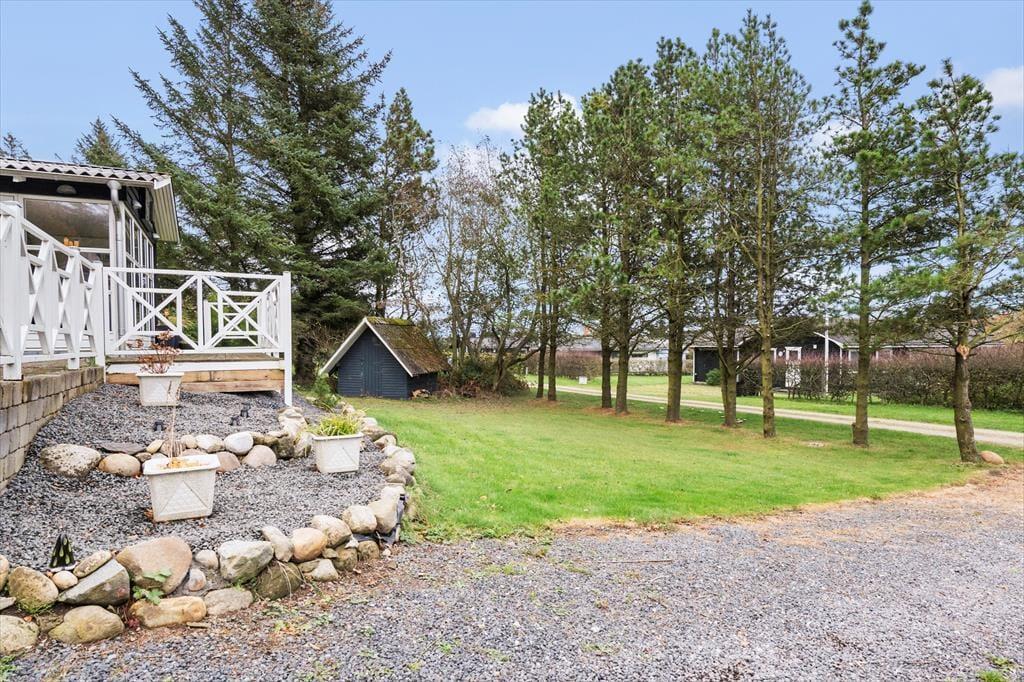 Sommerhusidyllen stortrives på Barsidalvej 20 i naturskønne og fredfyldte Toftum Bjerge. Her på adressen kan I hygge jer i lyse og stemningsfulde rammer inden døre, og ude er der solrige terrasser, bålsted og andre skønne detaljer på den grønne grund.