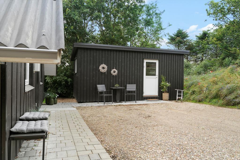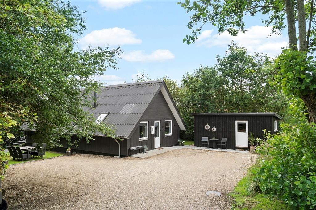Dette klassiske træsommerhus er pænt renoveret og stilfuldt indrettet, og så har det en attraktiv adresse for enden af en lukket vej i naturskønne Toftum Bjerge. Kort sagt er det et dejligt sted at slappe af og nyde ferien.