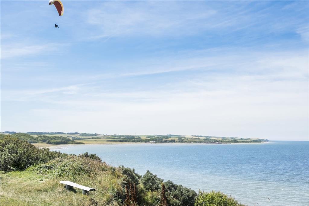 Huset ligger for enden af en lukket vej i det hyggelige og populære sommerhusområde Toftum Bjerge. Her er I omgivet af smuk natur med stejle klipper og flotte udsigtsposter, som det er værd at dvæle ved. Fra huset er der kun 800 meter til den gode badestrand og endnu kortere afstand til campingpladsen, som har restaurant og mange aktiviteter. Der er glimrende muligheder for paragliding i det bakkede landskab, og I finder desuden en velbesøgt golfbane blot et par kilometer fra huset. Vil I på udflugt, kan I eksempelvis tage turen til frilandsmuseet Hjerl Hede, hvor der er oplevelser for hele familien. I kan også besøge de omkringliggende byer Struer, Skive og Holstebro, hvor I kan gå tur i de hyggelige bykerner med spændende butikker, caféer og restauranter.