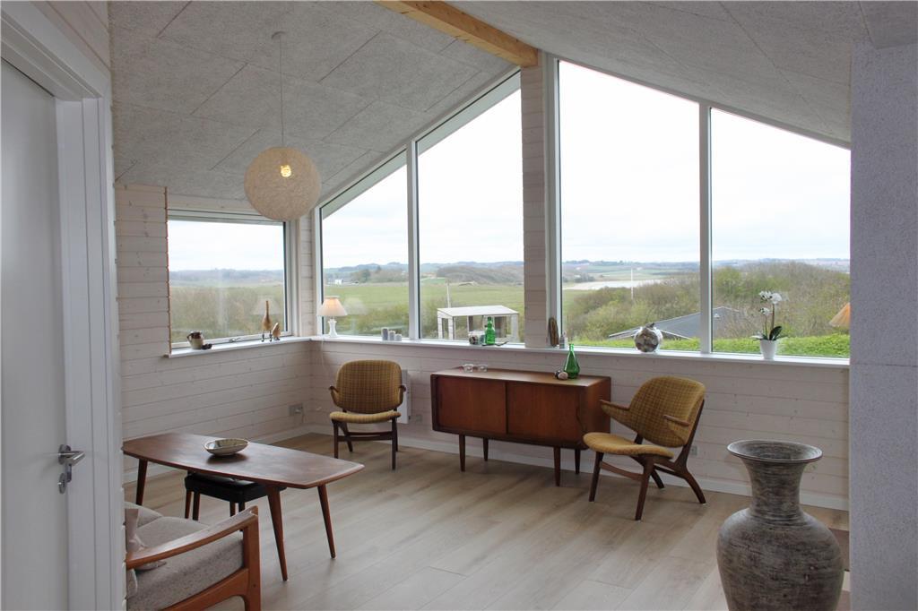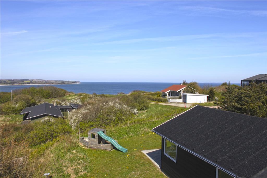 Naturomgivelserne er helt i top her på Gl. Landevej 23, hvor dette sommerhus ligger. Fra stuen kan I nyde panoramaudsigten over Toftum Bjerge og Limfjorden, og lige i nærheden kan I tage trappen ned ad den stejle klint til stranden.