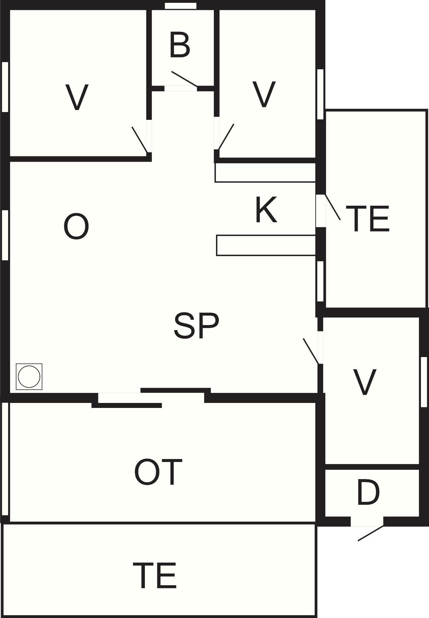 1 Opholdsstue: 25 m2, brændeovn, cd-afspiller, dvd-afspiller, tv, parabol