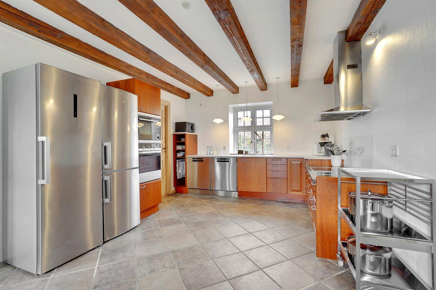 Køkkenet er udstyret med 2 køleskabe. Der er 4 keramiske kogeplader, miniovn, varmluftovn, mikrobølgeovn samt 2 opvaskemaskiner.