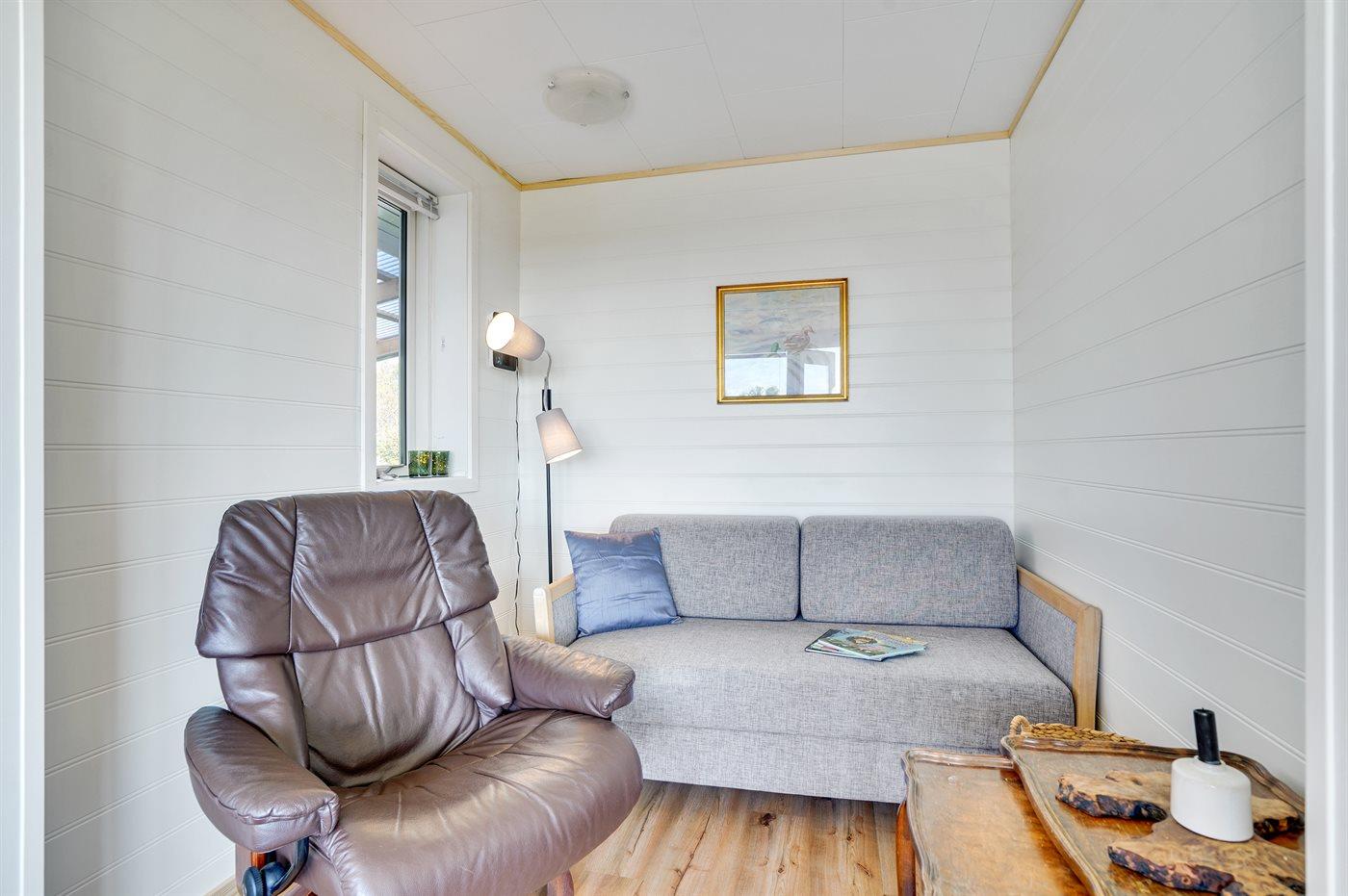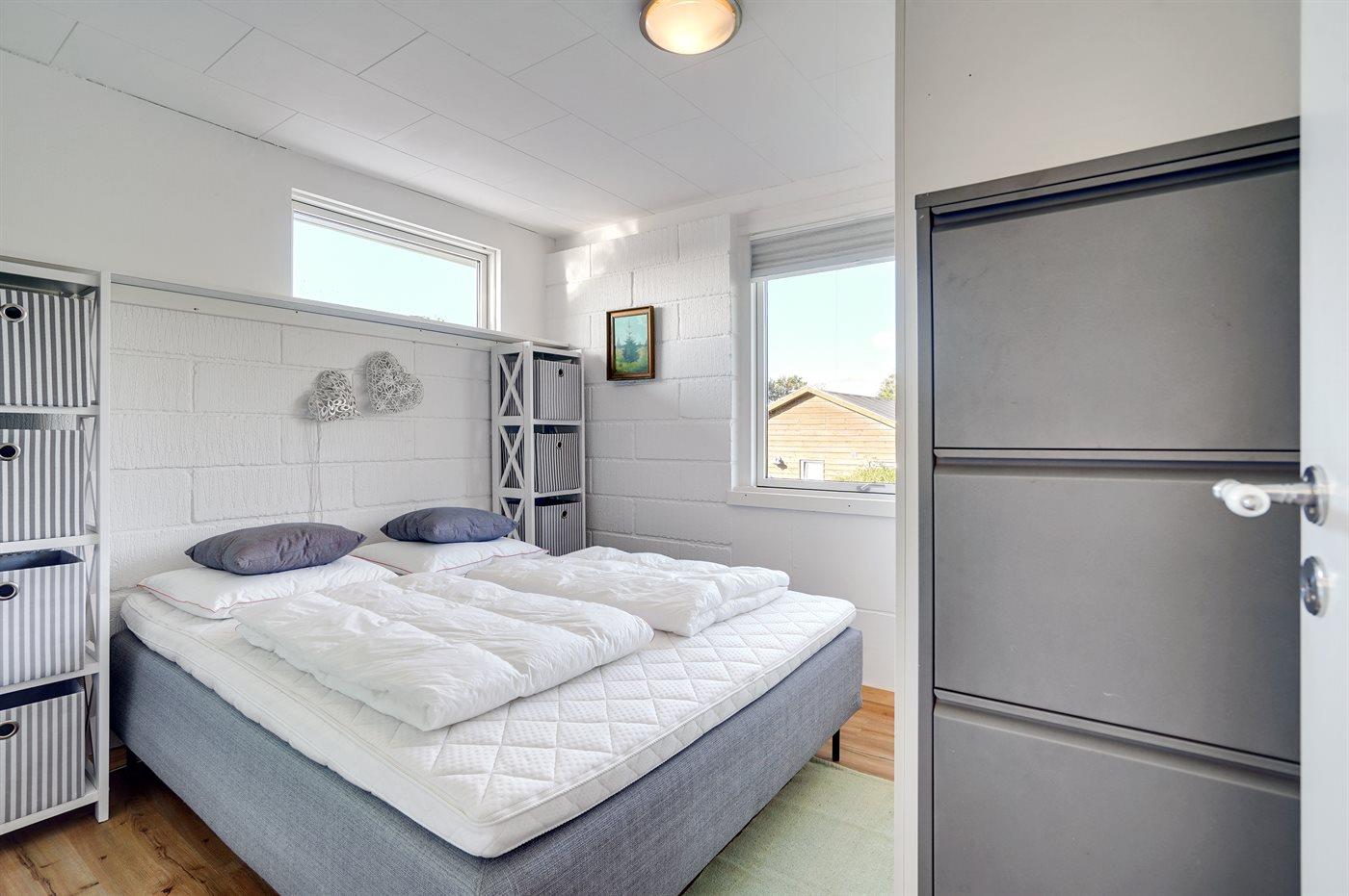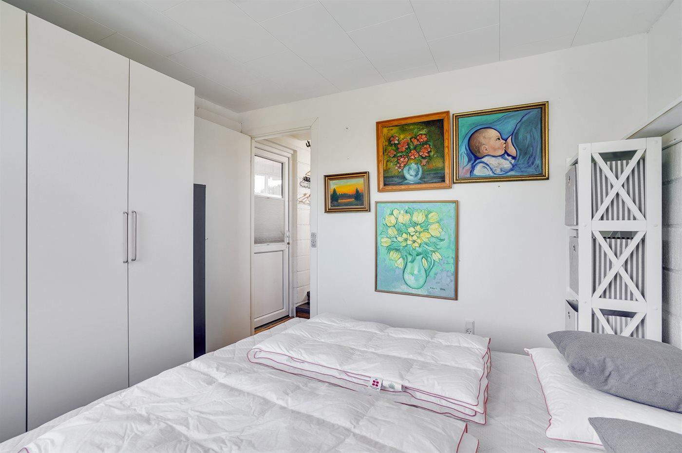 Der er i alt 1 soveværelse. Sovepladserne fordeler sig på: 2 sovepladser i dobbeltseng. 2 sovepladser i enkeltsenge. 2 sovepladser i sovesofa (dobbelt). 2 af disse sovepladser befinder sig i et anneks og 2 af dem befinder sig i opholdsstuen.