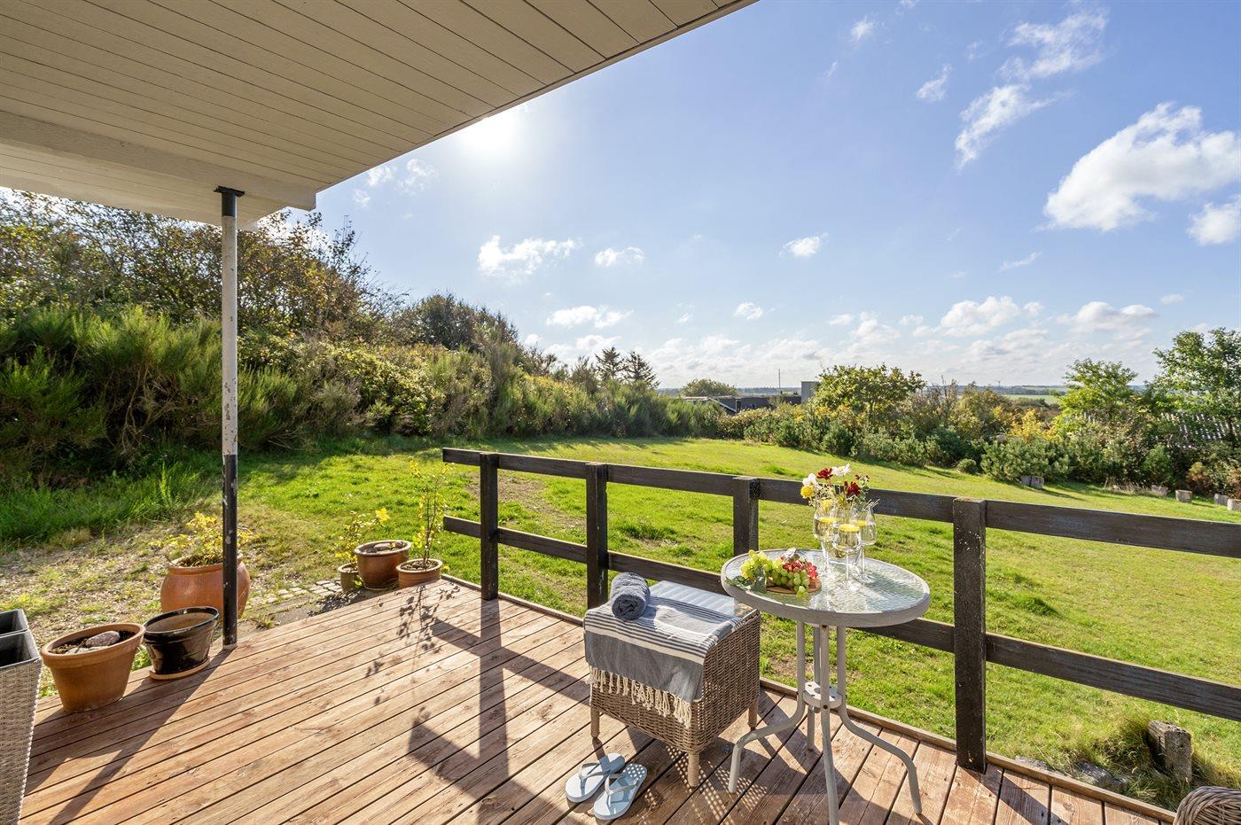 Charmerende sommerhus ved Toftum Bjerge med udsigt, naturgrund og tæt på fjorden.