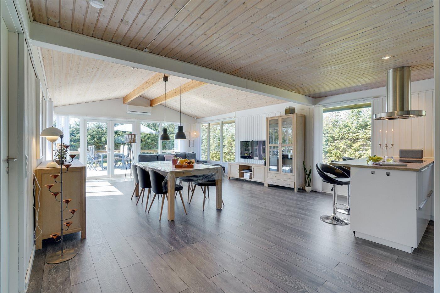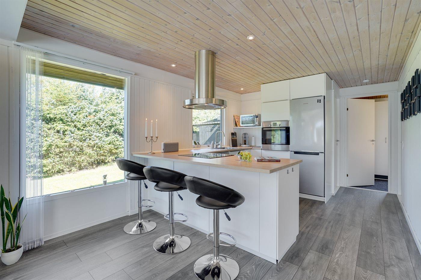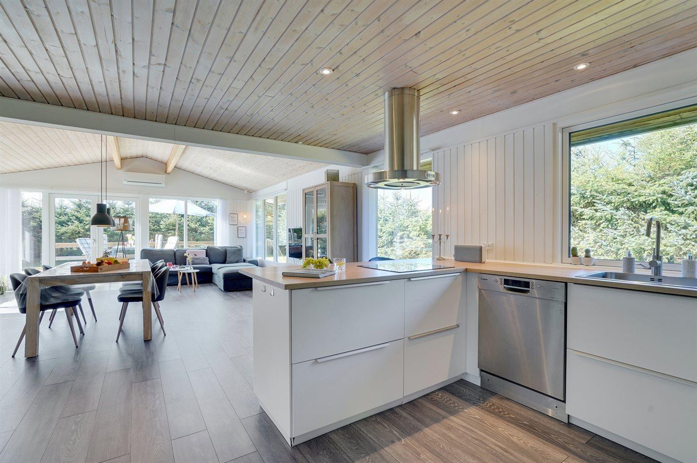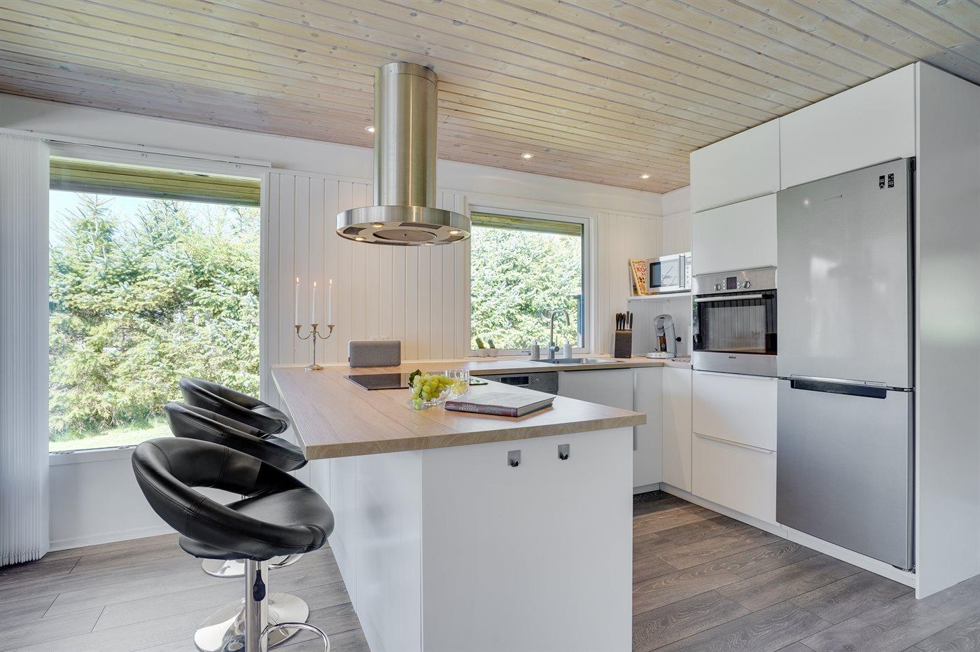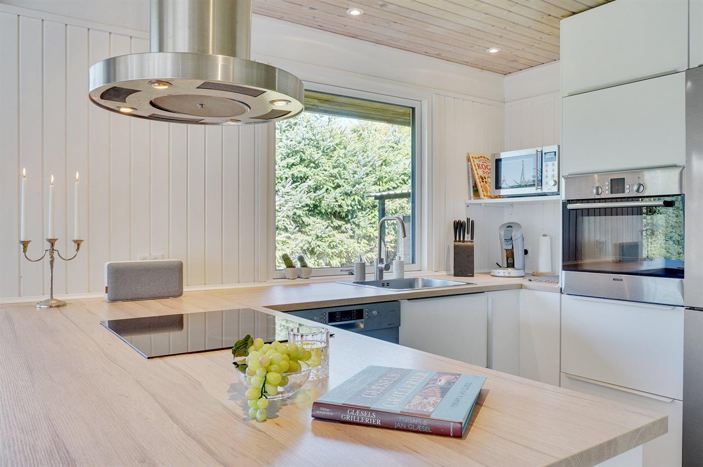 Køkkenet er udstyret med 1 køleskab. Der er 4 keramiske kogeplader, varmluftovn, mikrobølgeovn samt opvaskemaskine.