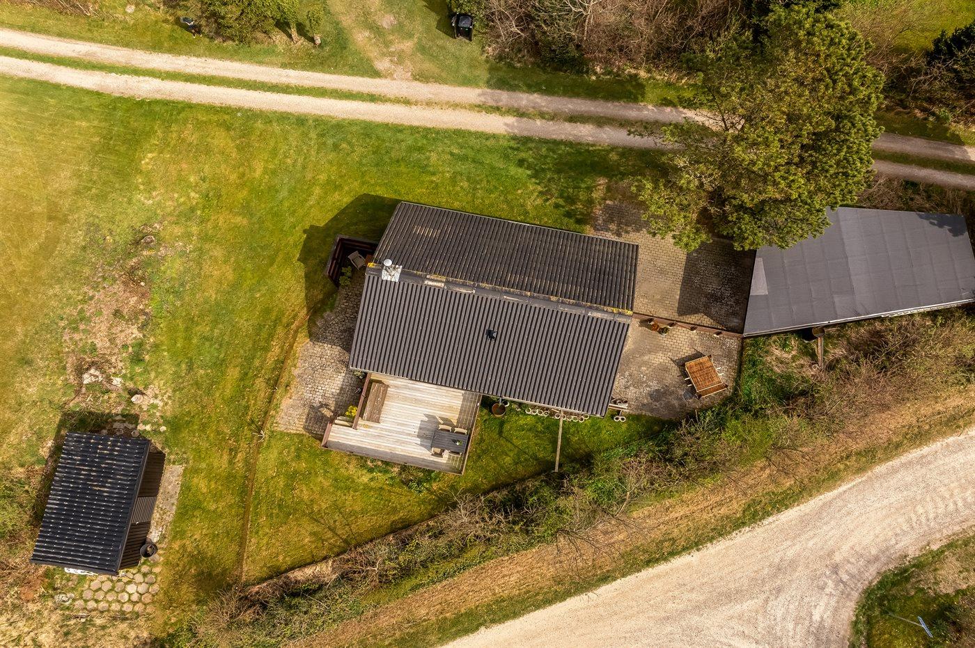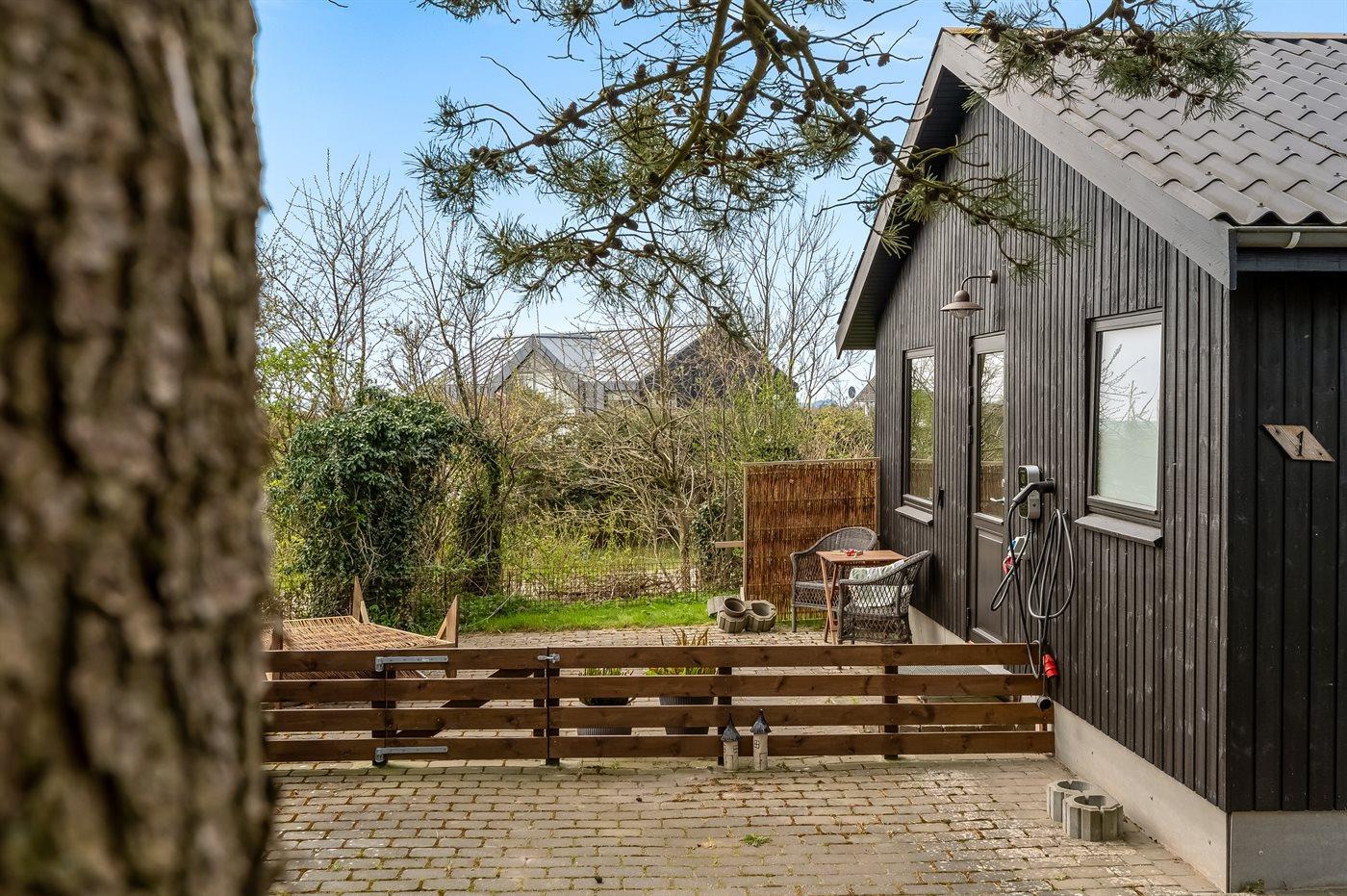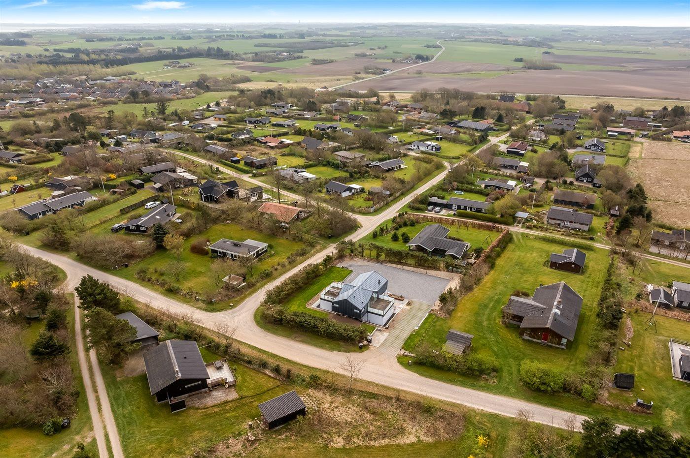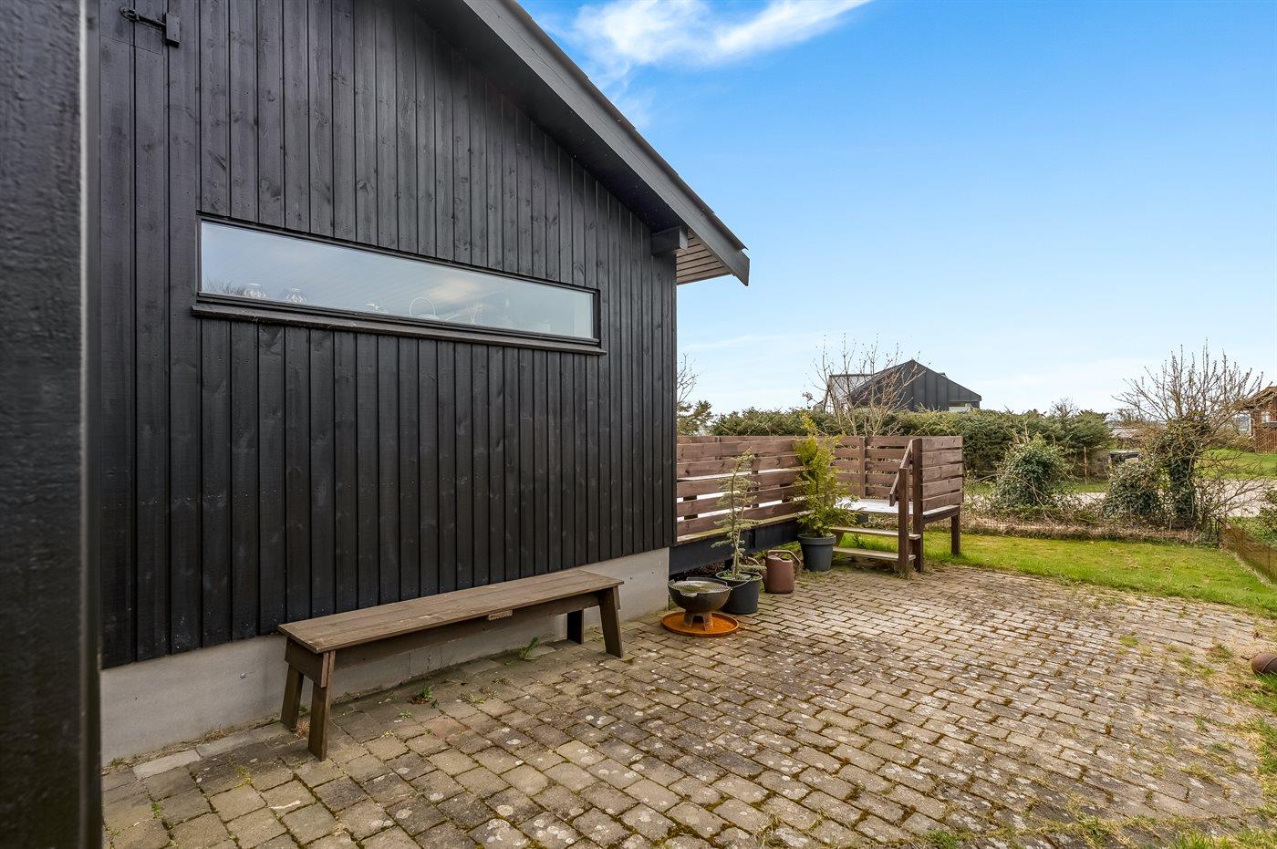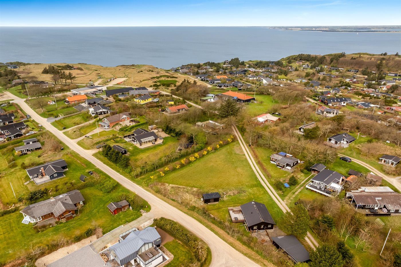 Ferieboligen er beliggende på en 1059 m² stor naturgrund. Der er 300 m til fjorden. Nærmeste forretning er beliggende i en afstand af 1500 m. Der er en golfbane i en afstand af 1500 m. Til ferieboligen hører åbent terrasseareal. Grill til rådighed. Der er carport til rådighed. Der er installeret stik til opladning af elbil. CEE stik. Med 11 kW ladeeffekt. Parkering ved ferieboligen.