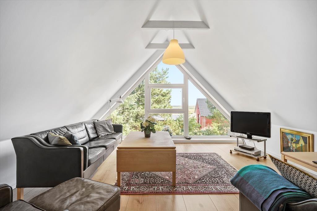 Med 125 m2 fordelt på to etager får I god plads til otte personer inden døre. Der er fire soveværelser at gøre godt med, hvoraf et ligger på førstesalen. Heroppe finder I også en opholdsstue, der er hyggeligt indrettet med sofaer, lænestole, tv og bordfodbold. Et stort gavlvindue inviterer dagslyset indenfor og sørger for, at I kan skue ud over det flade landskab mod Vadehavet. I stueplan ligger et stort køkken-alrum, hvor I også kan hygge jer sammen – og trænger I virkelig til at koble af, er der sauna i huset. Den ligger i forlængelse af badeværelset, der fremstår pænt og velholdt som resten af rummene.