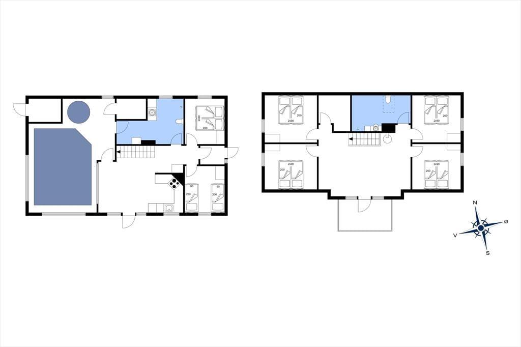 Sommerhuset er et særdeles rummeligt eksemplar på 203 m2, og derfor er der også plads til hele 14 feriegæster inden døre. Soveværelser er der seks af, og planløsningen byder desuden på to komplette badeværelser, der ligesom sovegemakkerne er placeret både i stueetagen og på første sal. I stueplan støder badeværelset på praktisk vis op til husets pool rum, som endnu bedre kan betegnes som en lækker wellnessafdeling: Her er der nemlig ikke bare en dejlig pool på 19 m2, men også et 4-personers spabad og en sauna. Når tiden ikke bliver brugt på at plaske i vandet eller læne sig tilbage i varmen, kan I samles i husets flotte køkken-alrum, der for øvrigt ligger med direkte udsyn til poolen. Går I op på førstesalen, kan I slå jer ned i stuen, som er et dejligt opholdsrum med brændeovn, fladskærms-TV og bløde siddepladser til mange mennesker.