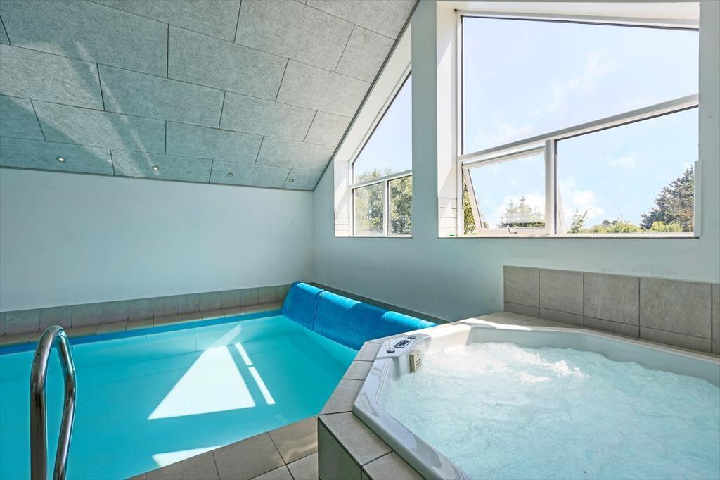 Velkommen til dette lækre poolhus, der ligger på en stor, grøn grund i Toftum – tæt på Bolilmarks smukke lynglandskab og lige ved de flade enge, der breder sig ud mod Vadehavet og Rømøs østkyst. Inden døre er der ikke kun en lækker wellnessafdeling, men også et sjovt aktivitetsrum og en stor stue, og med hele seks soveværelser og to hemse er der god plads til 16 feriegæster.