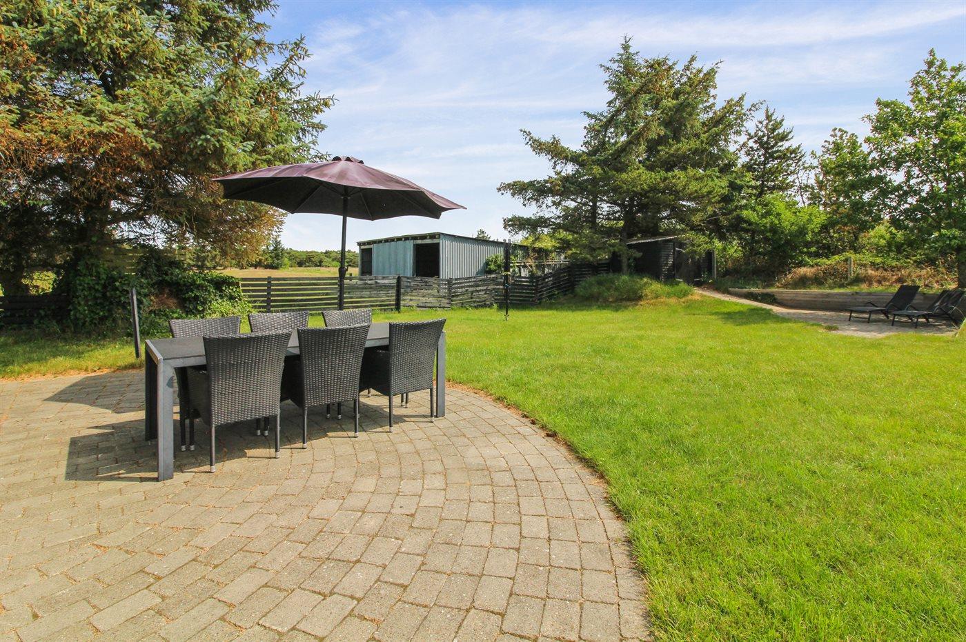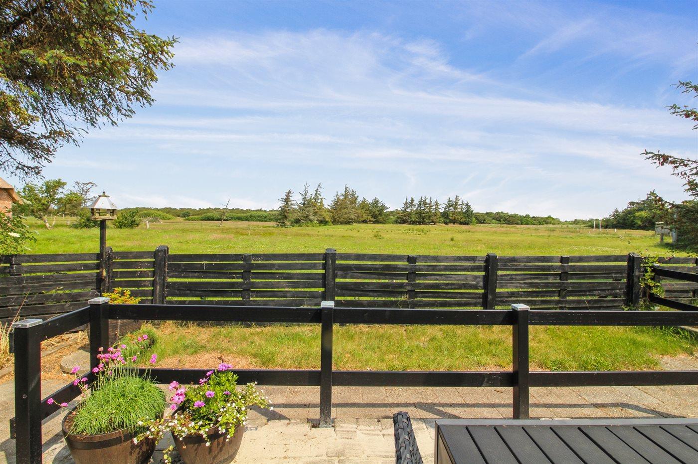 Ferieboligen er beliggende på en 700 m² stor naturgrund. Grunden er indhegnet. Der er 3800 m til havet. Der er 800 m til Vadehavet. Nærmeste forretning er beliggende i en afstand af 3000 m. Der er en golfbane i en afstand af 8600 m. Til ferieboligen hører åbent terrasseareal. Ligeledes er der adgang til udestue. Der er redskabsrum. Parkering ved ferieboligen.