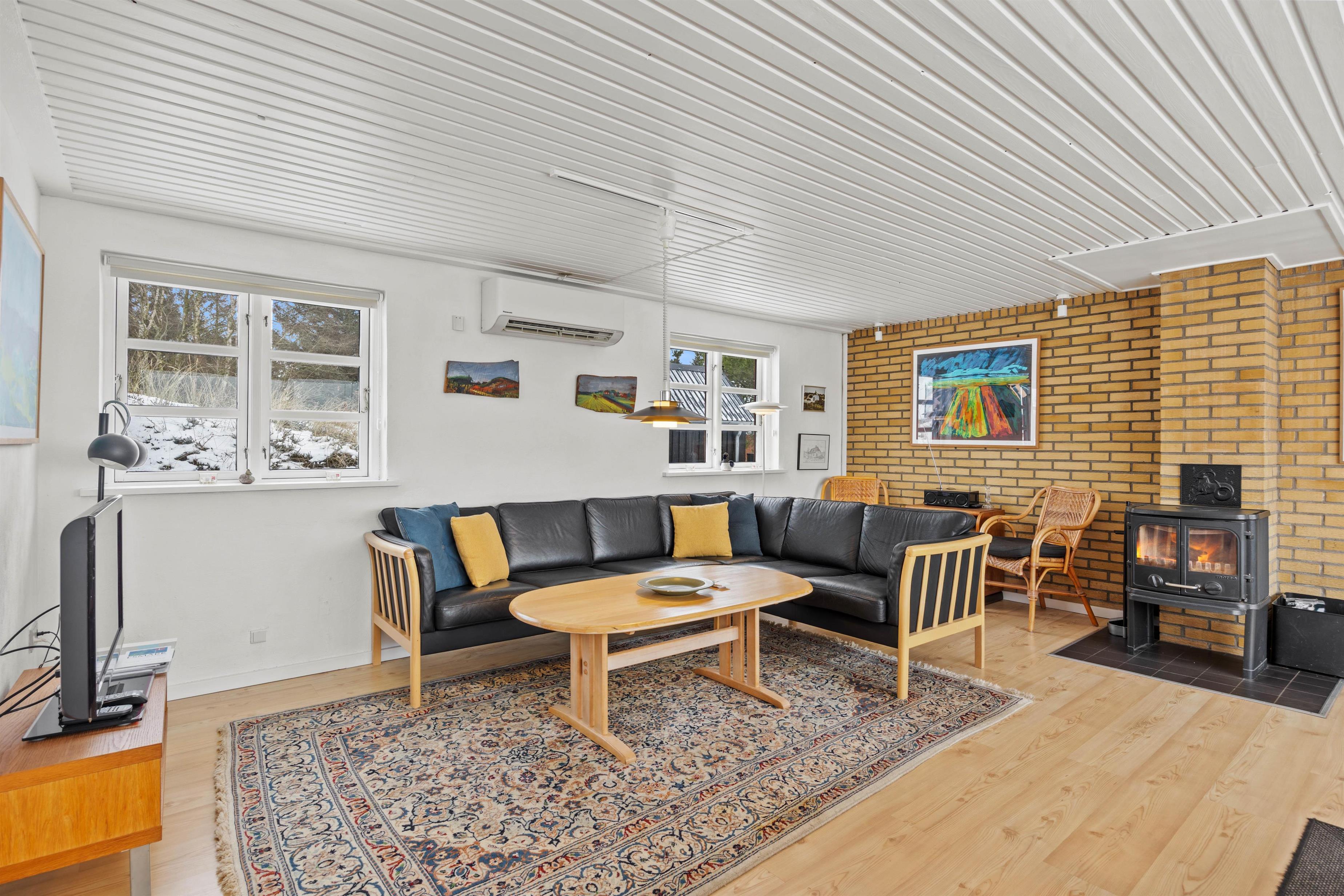 Køkkenet er udstyret med både køleskab, fire kogeplader, ovn og en mikrobølgeovn, så I frit kan udforske jeres kulinariske færdigheder. Køkkenalrummet har en dejlig brændeovn til de kolde aftener. Sommerhuset er ligeledes udstyret med en energibesparende varmepumpe.