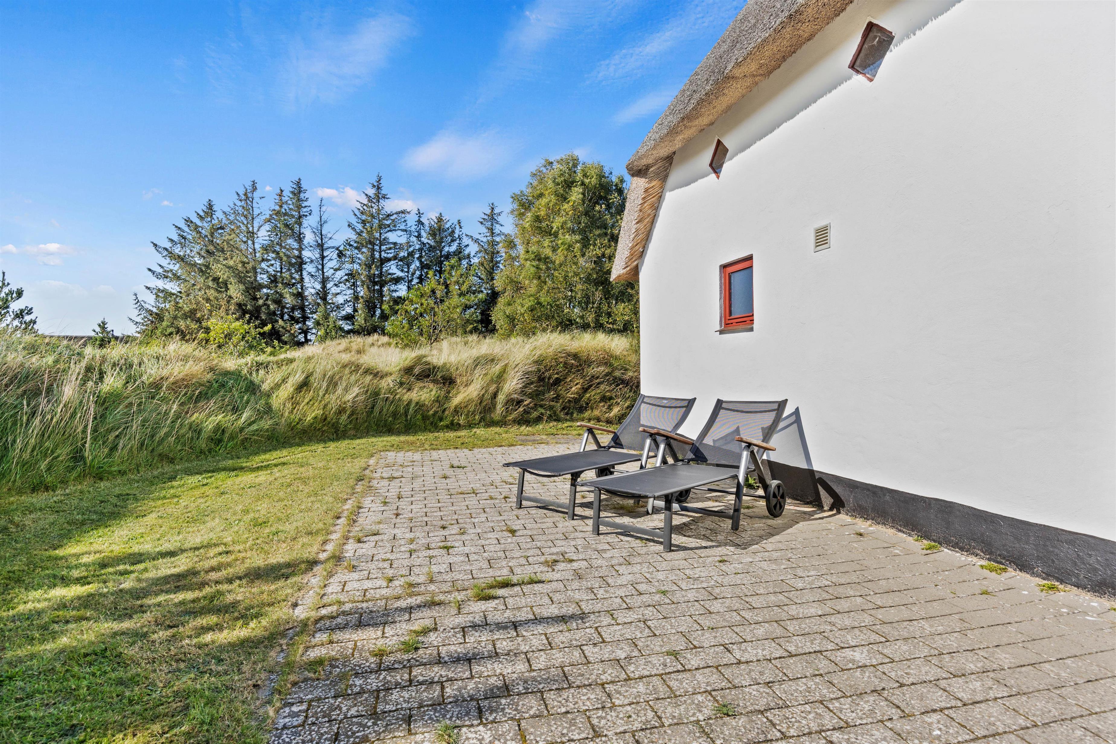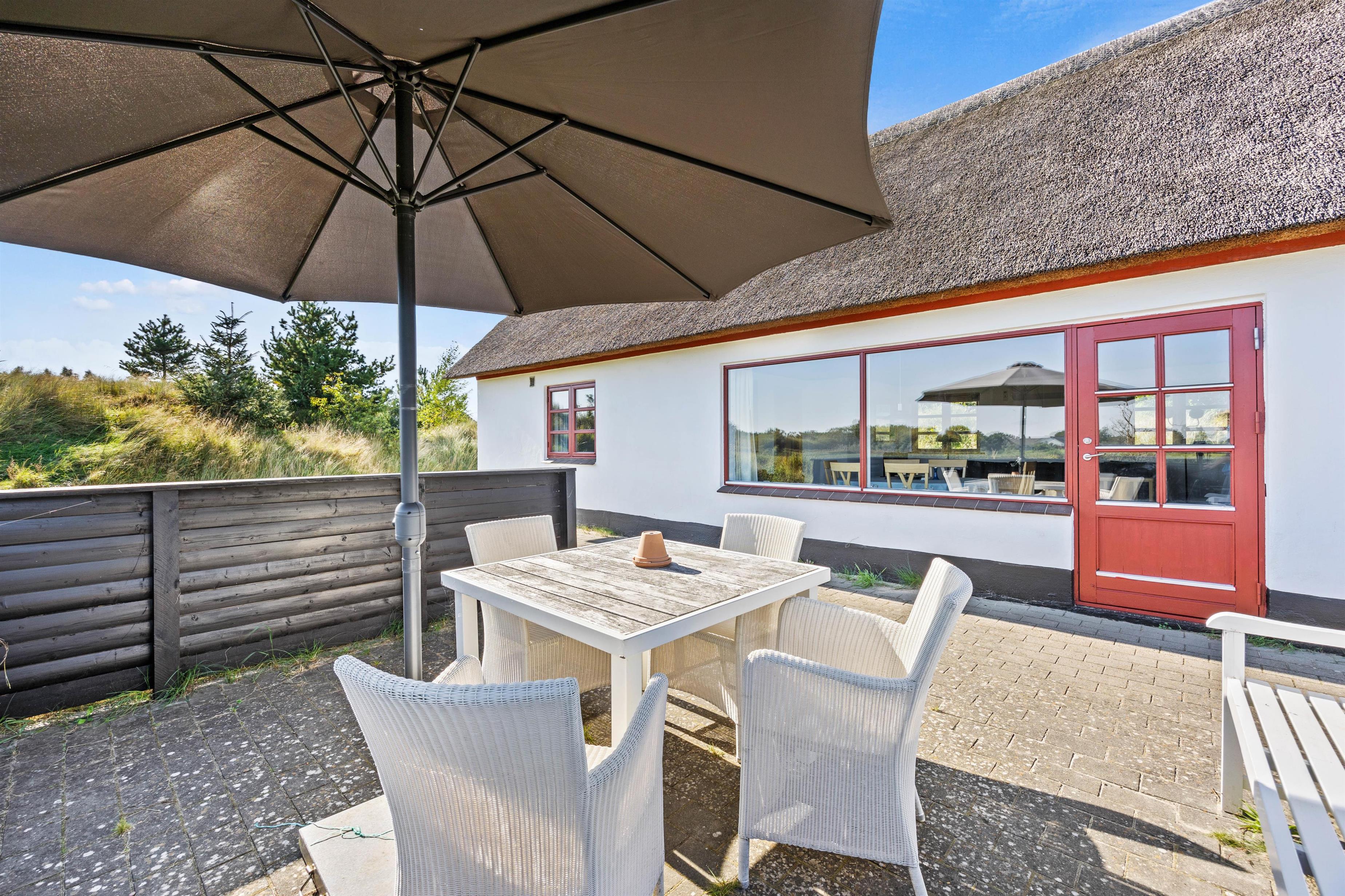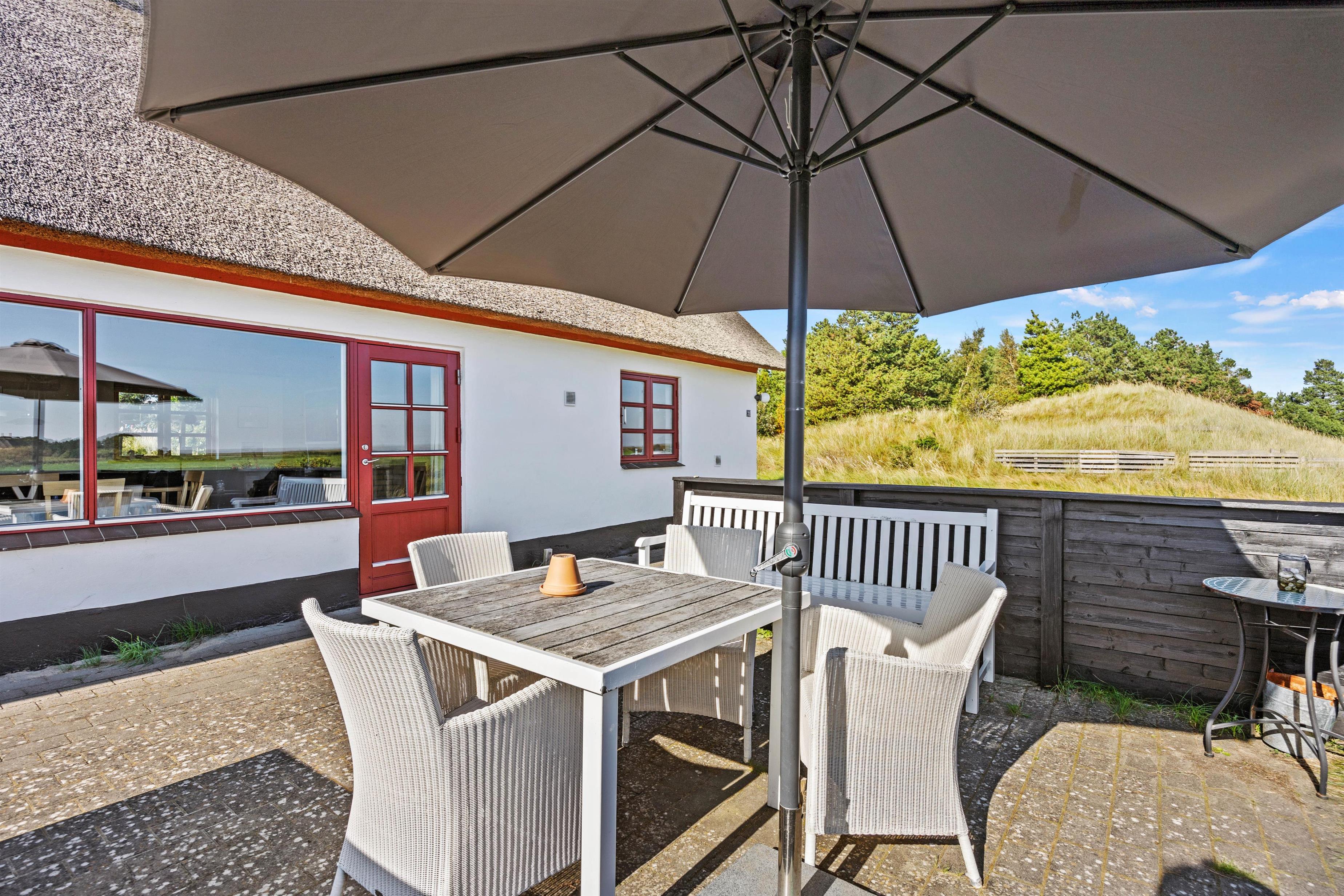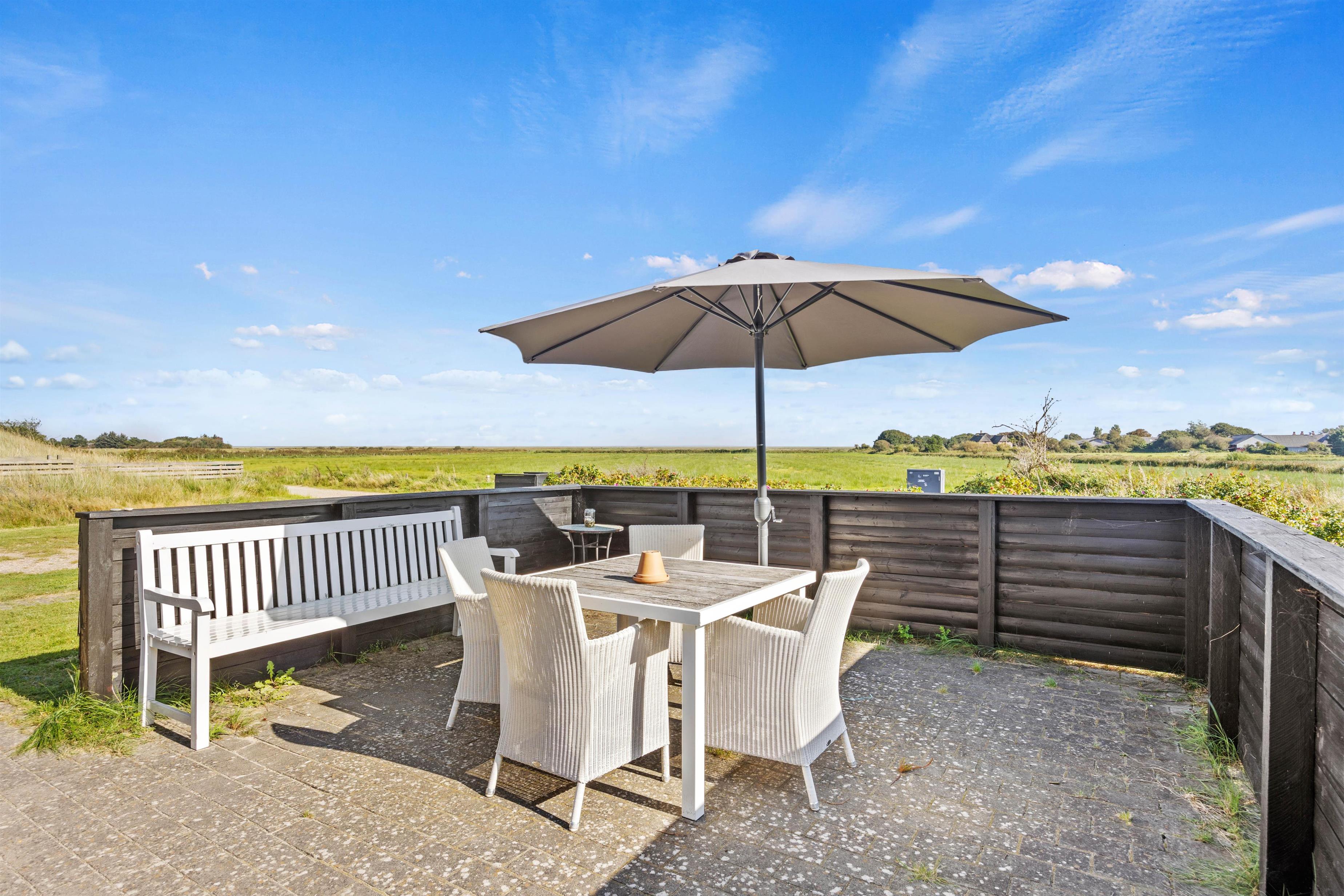 Efter en dag med talrige oplevelser på Rømø, kan I slappe af på sommerhusets åbne terrasse, der er udstyret med komfortable havemøbler og en grill, så I kan nyde de naturskønne omgivelser med lyden fra den sydende grill, mens solen danser over himlen.