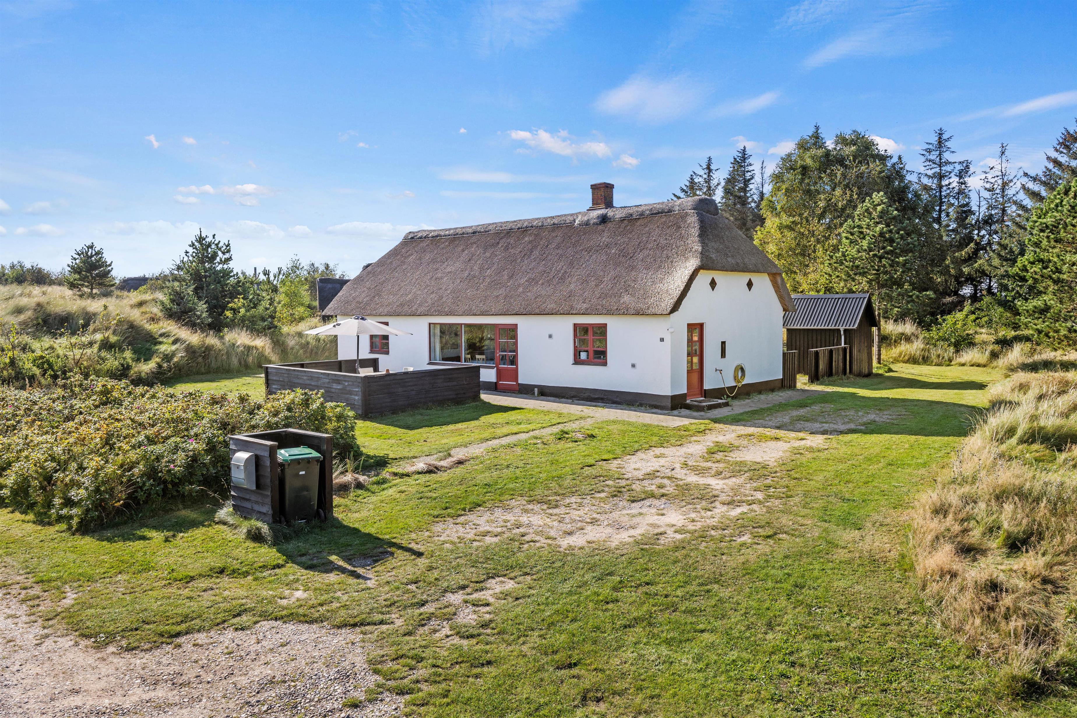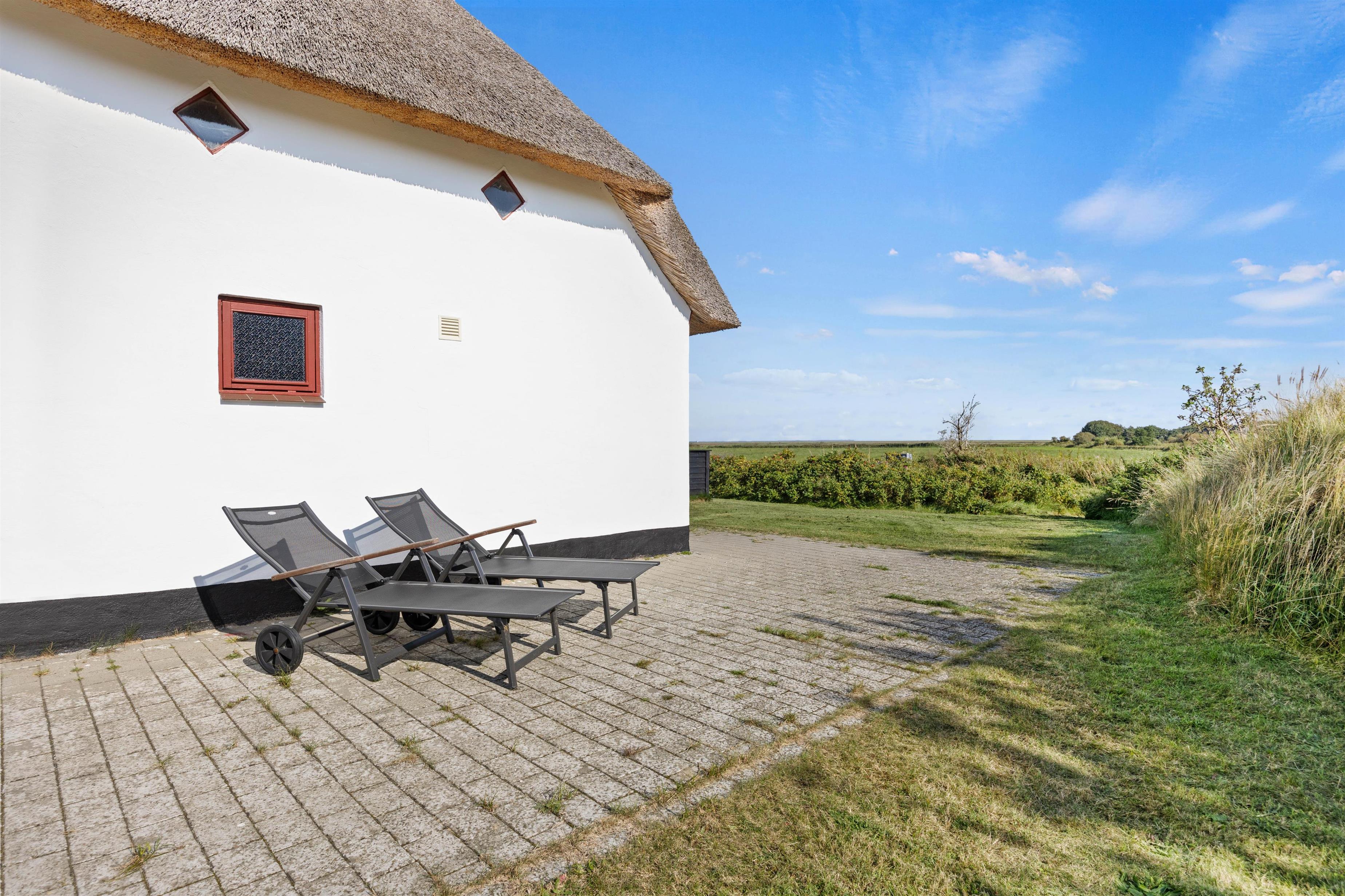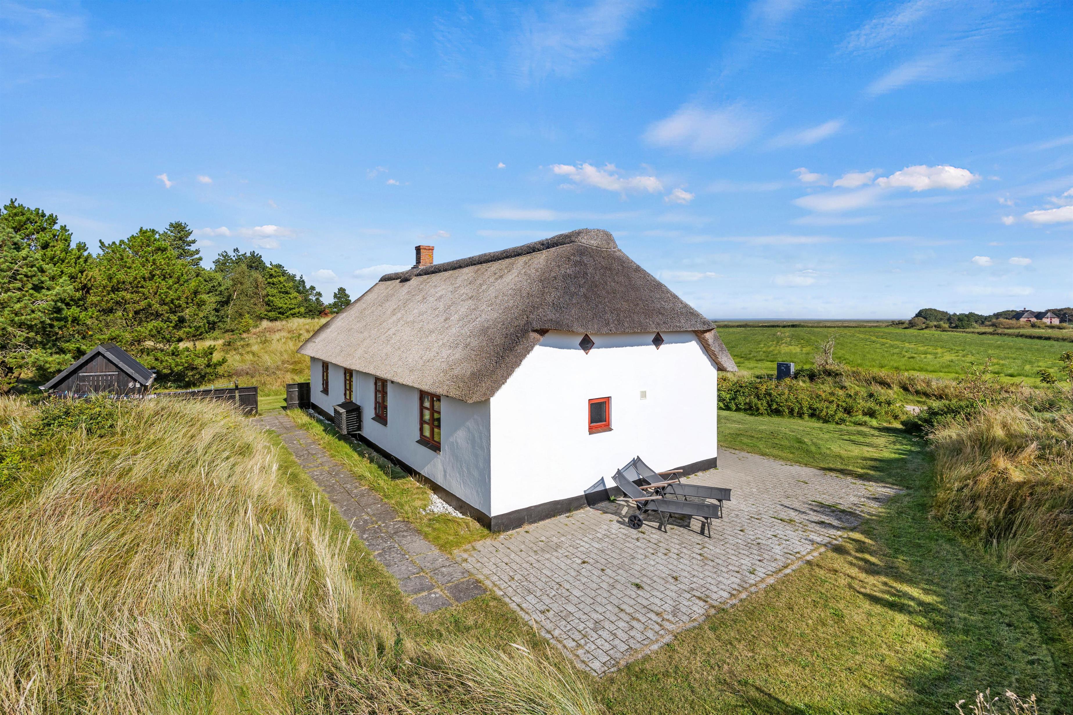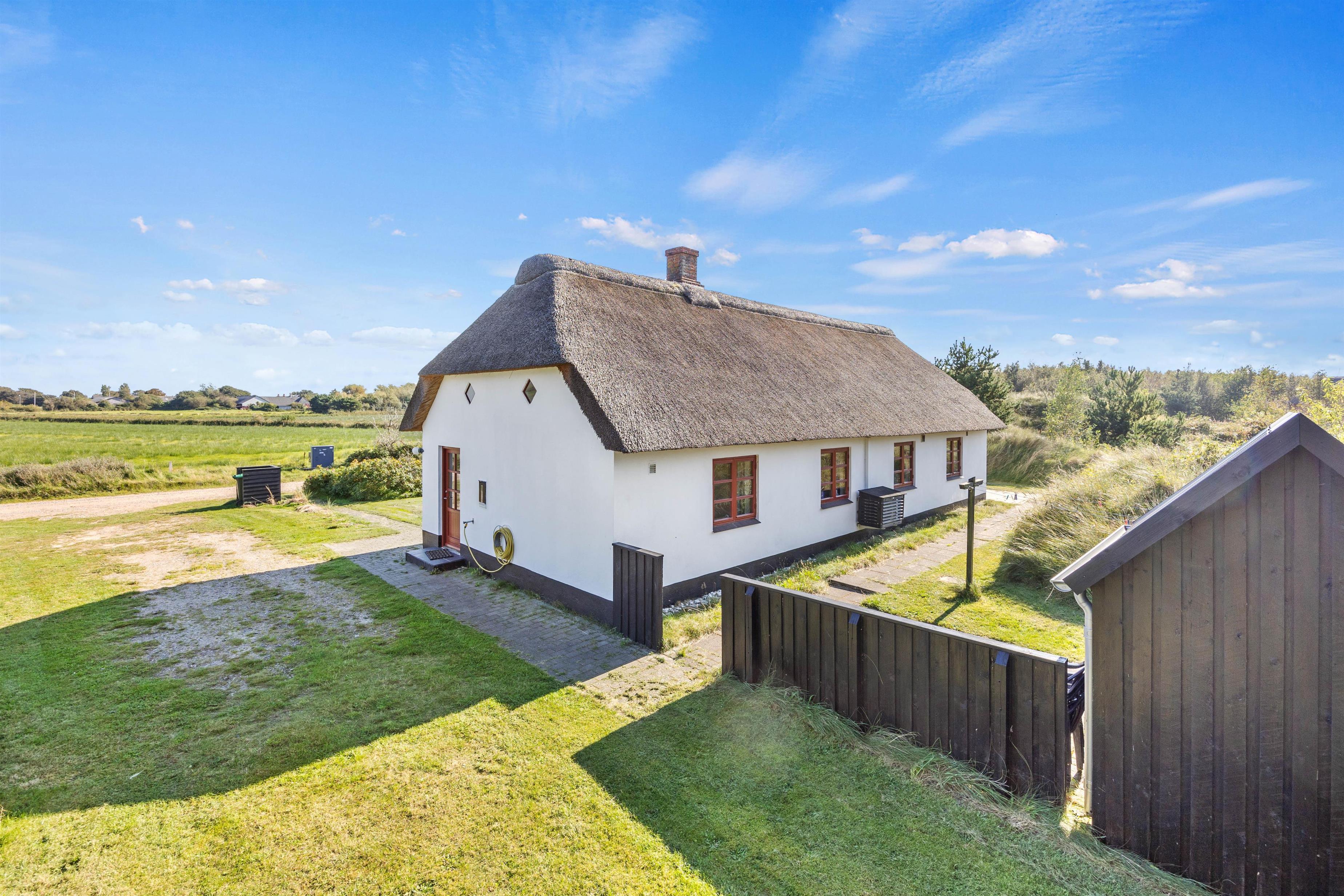 På Vestervej 31 i Toftum på Rømø findes dette charmerende stenhus med stråtag, der er beliggende på en naturskøn grund bag en klit og med en vidunderlig udsigt over de omkringliggende marker. Omgivet af en 2400 m² stor naturgrund er dette sommerhus et sandt fristed, kun 3,3 kilometer fra havet og med nærmeste forretning kun 5000 meter væk. Her inviteres I til en uforglemmelig ferieoplevelse, hvor I kan nyde roen og de naturskønne omgivelser på Rømø.
