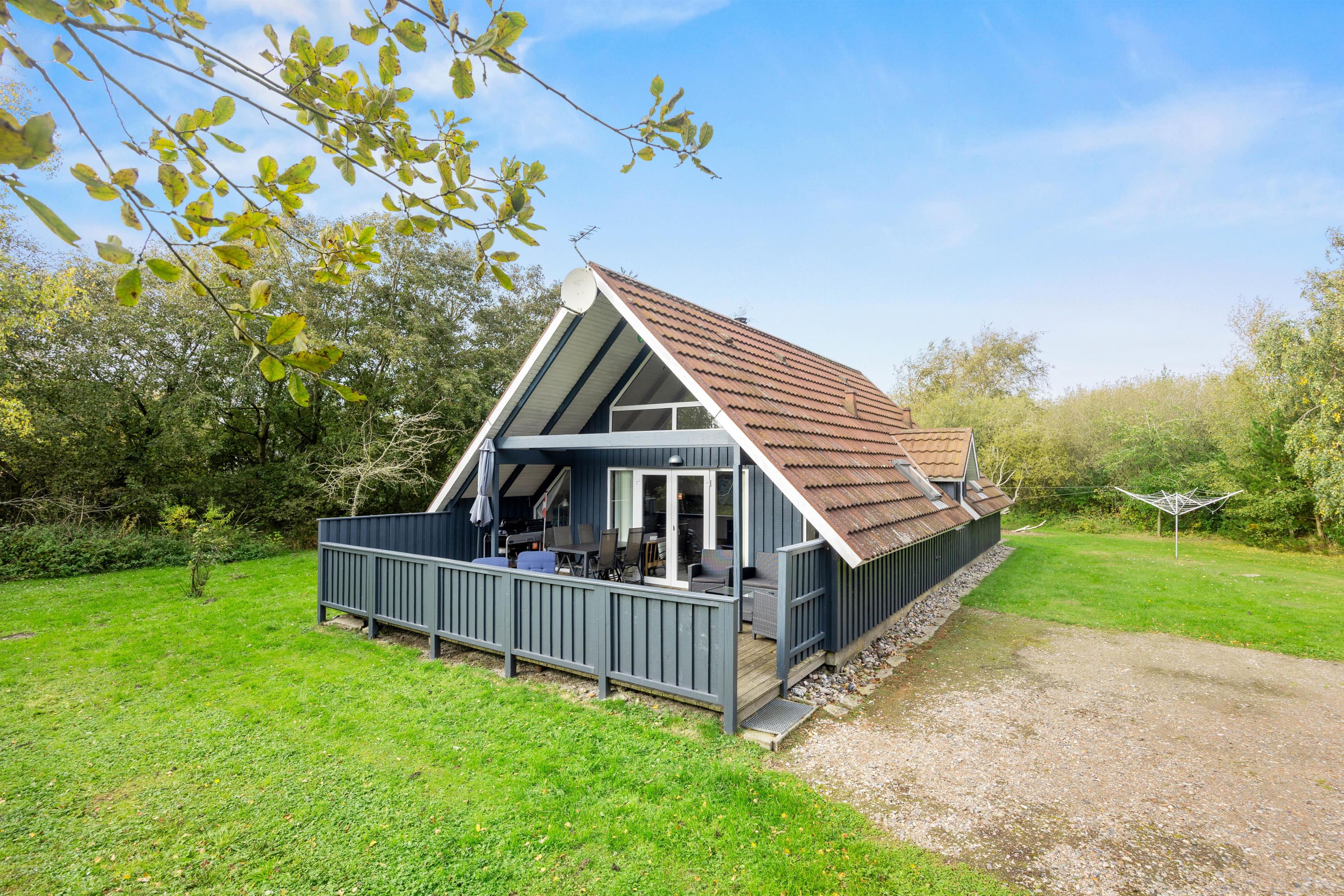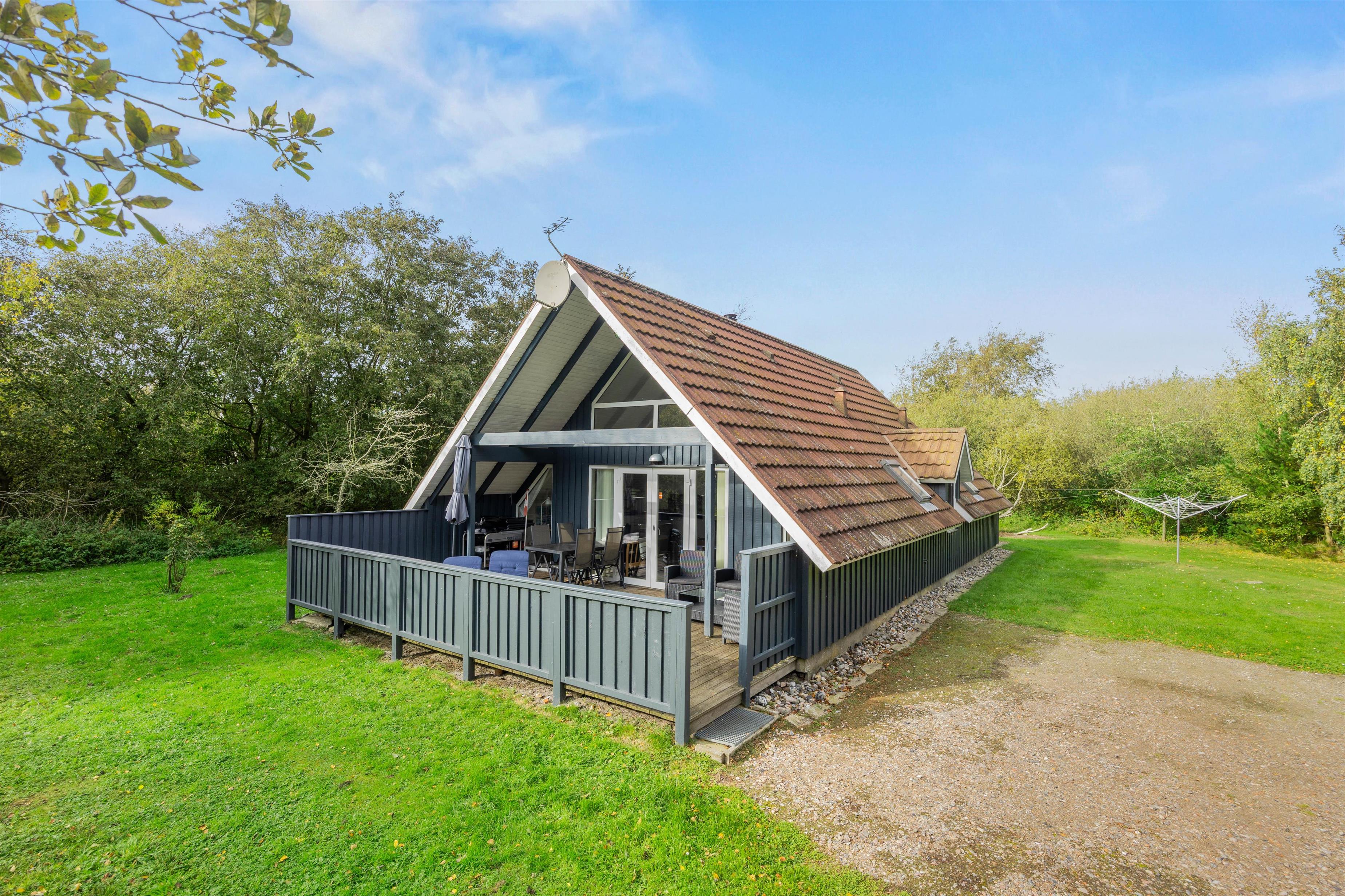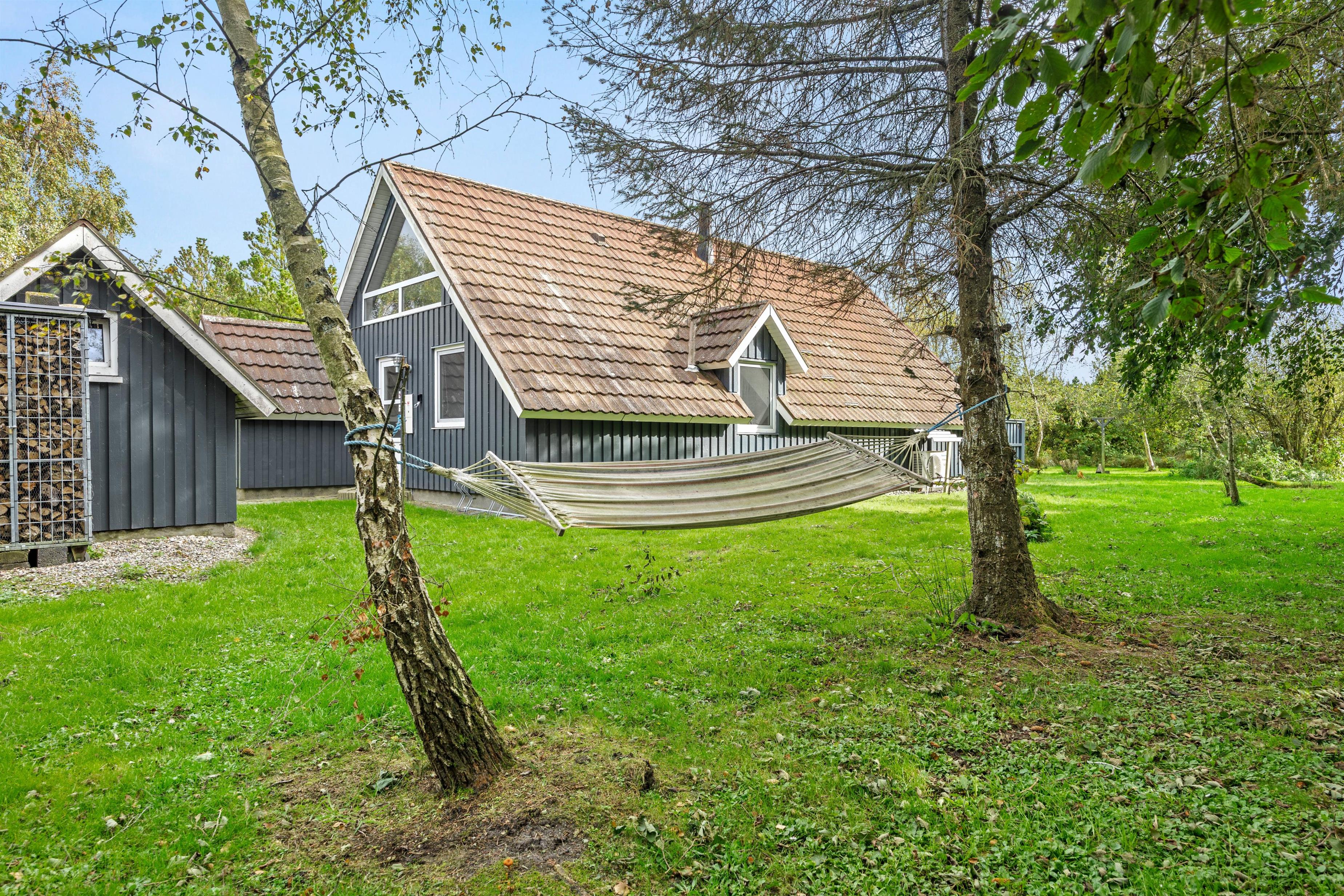 Udenfor fortsætter den hyggelige stemning på en rummelig naturgrund, hvor både en åben og en overdækket terrasse med behagelige havemøbler indbyder til lange, afslappende sommeraftener. I har også muligheden for at grille udendørs som bare tilføjer ekstra hygge, mens den rolige beliggenhed med havet ca. 1500 meter væk giver jer en skøn udsigt og masser af frisk luft. Den fredelige atmosfære gør Koubjerg 8 til et perfekt tilflugtssted for dem, der ønsker at kombinere afslapning med en aktiv ferie i naturens skød.