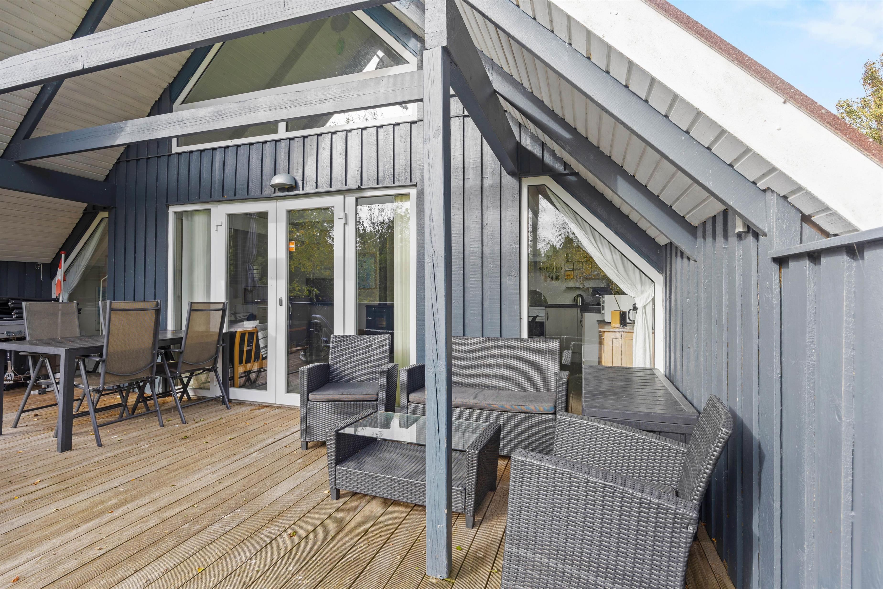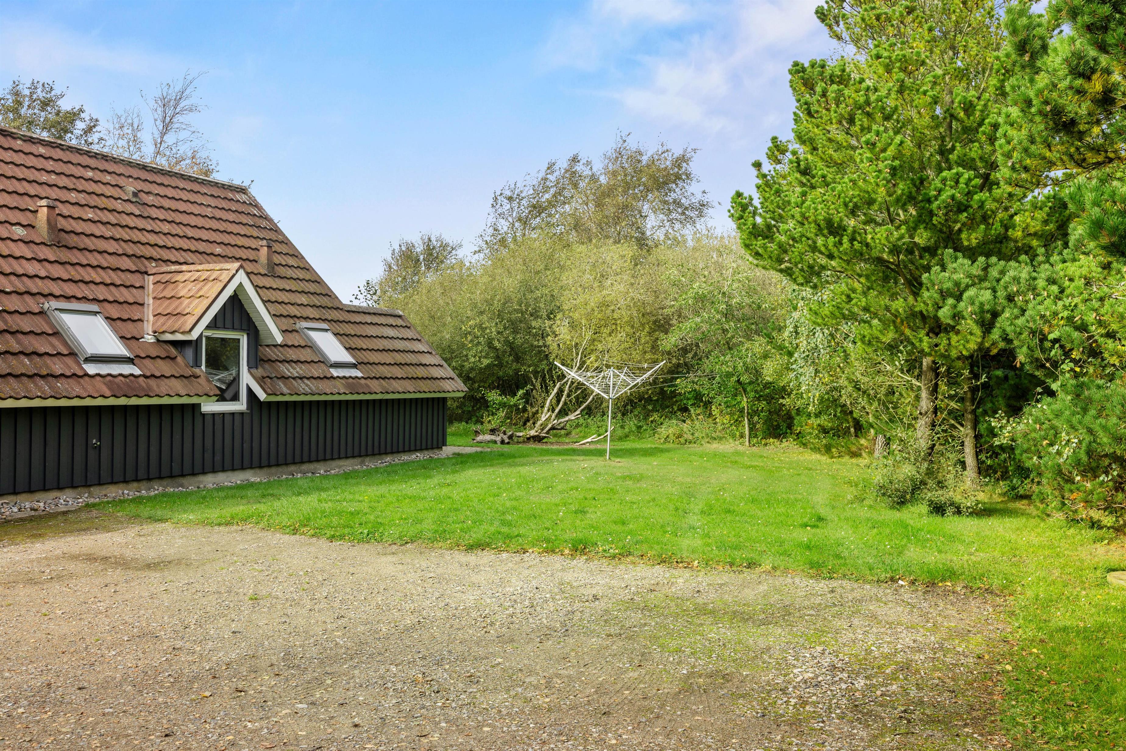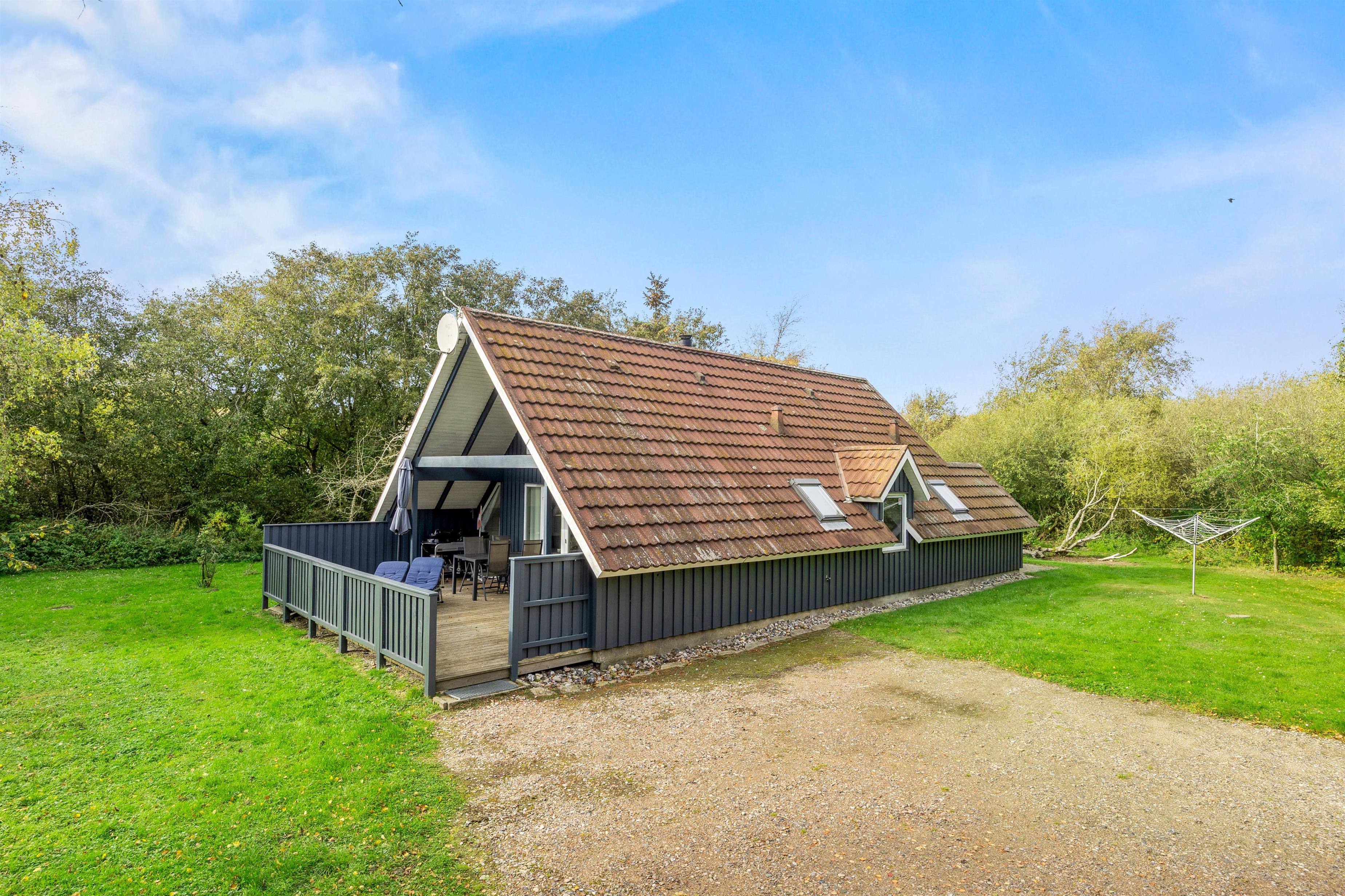 Udenfor fortsætter den hyggelige stemning på en rummelig naturgrund, hvor både en åben og en overdækket terrasse med behagelige havemøbler indbyder til lange, afslappende sommeraftener. I har også muligheden for at grille udendørs som bare tilføjer ekstra hygge, mens den rolige beliggenhed med havet ca. 1500 meter væk giver jer en skøn udsigt og masser af frisk luft. Den fredelige atmosfære gør Koubjerg 8 til et perfekt tilflugtssted for dem, der ønsker at kombinere afslapning med en aktiv ferie i naturens skød.