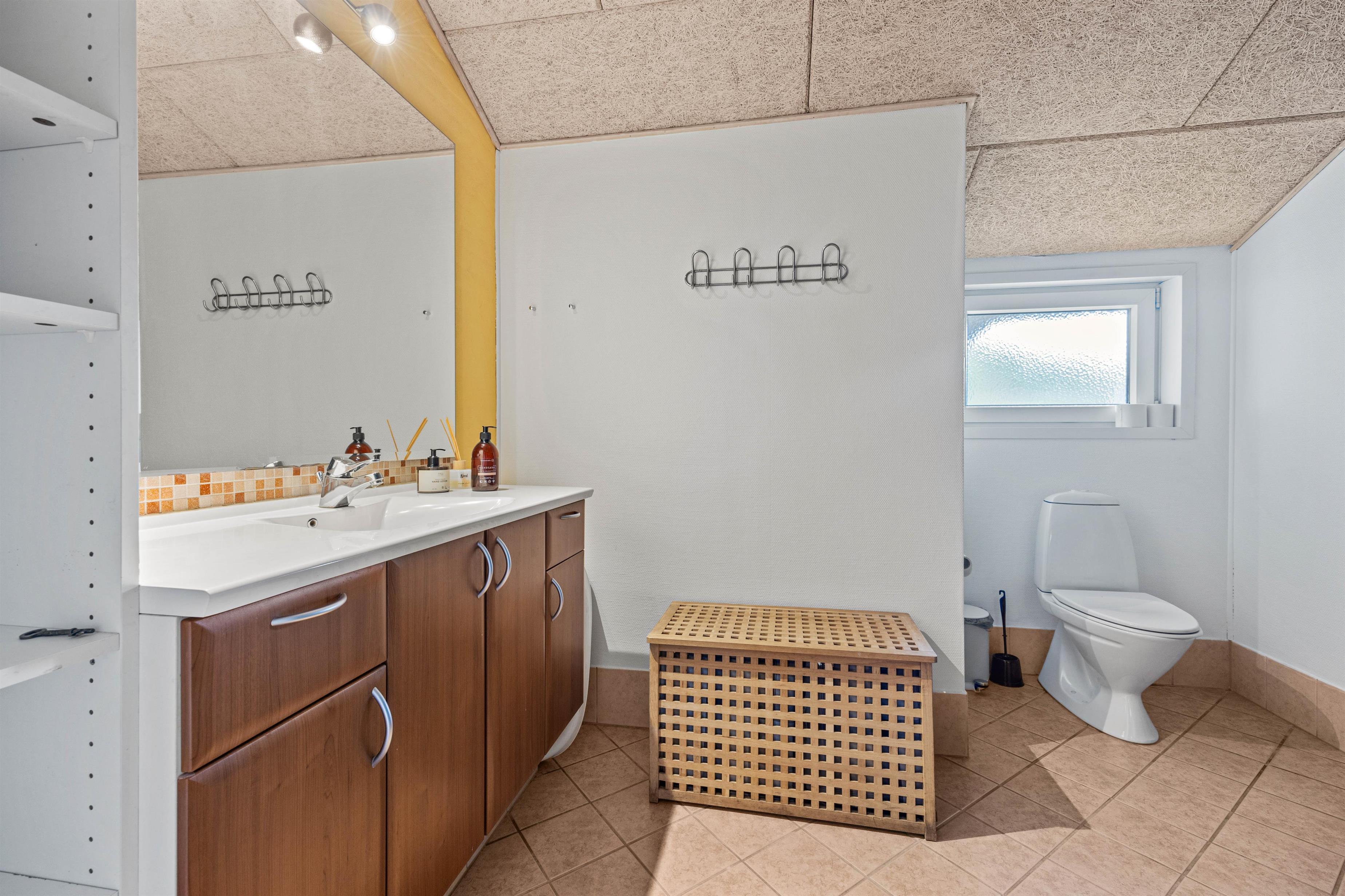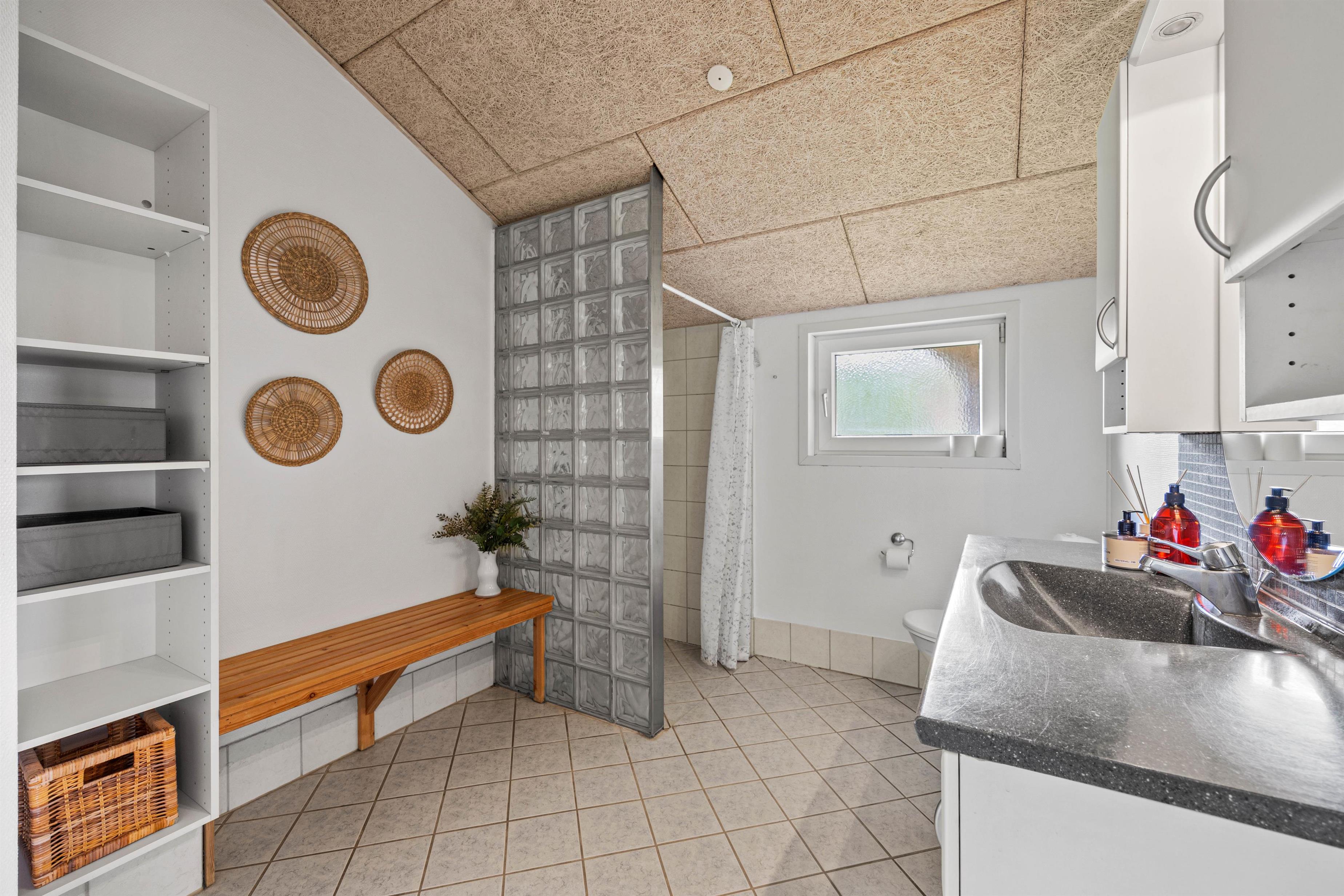 Når hele flokkens skal samles, kan det eksempelvis være i det store køkkenalrum, der forener stue, køkken og en skøn udestue. Her er rigeligt med siddepladser og loft til kip, hvilket skaber en rummelig og rar atmosfære. I det veludstyrede køkken kan laves lækker mad, mens børnene tegner omkring spisebordet. Efter mad klarer opvaskemaskine naturligvis oprydningen for jer! Feriehuset har alle hverdagens bekvemmeligheder såsom vaskemaskine og tørretumbler, der sørger for friske håndklæder.