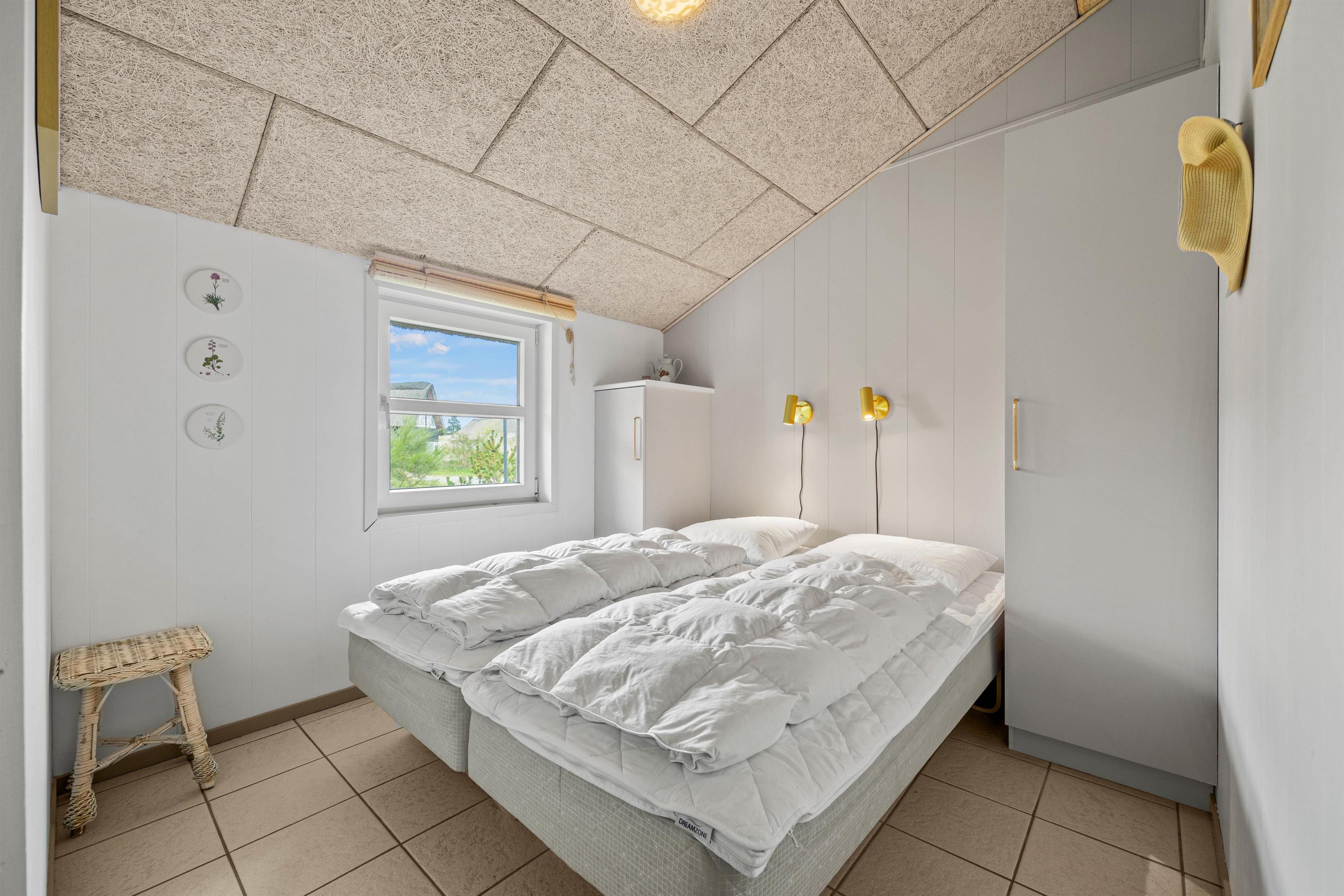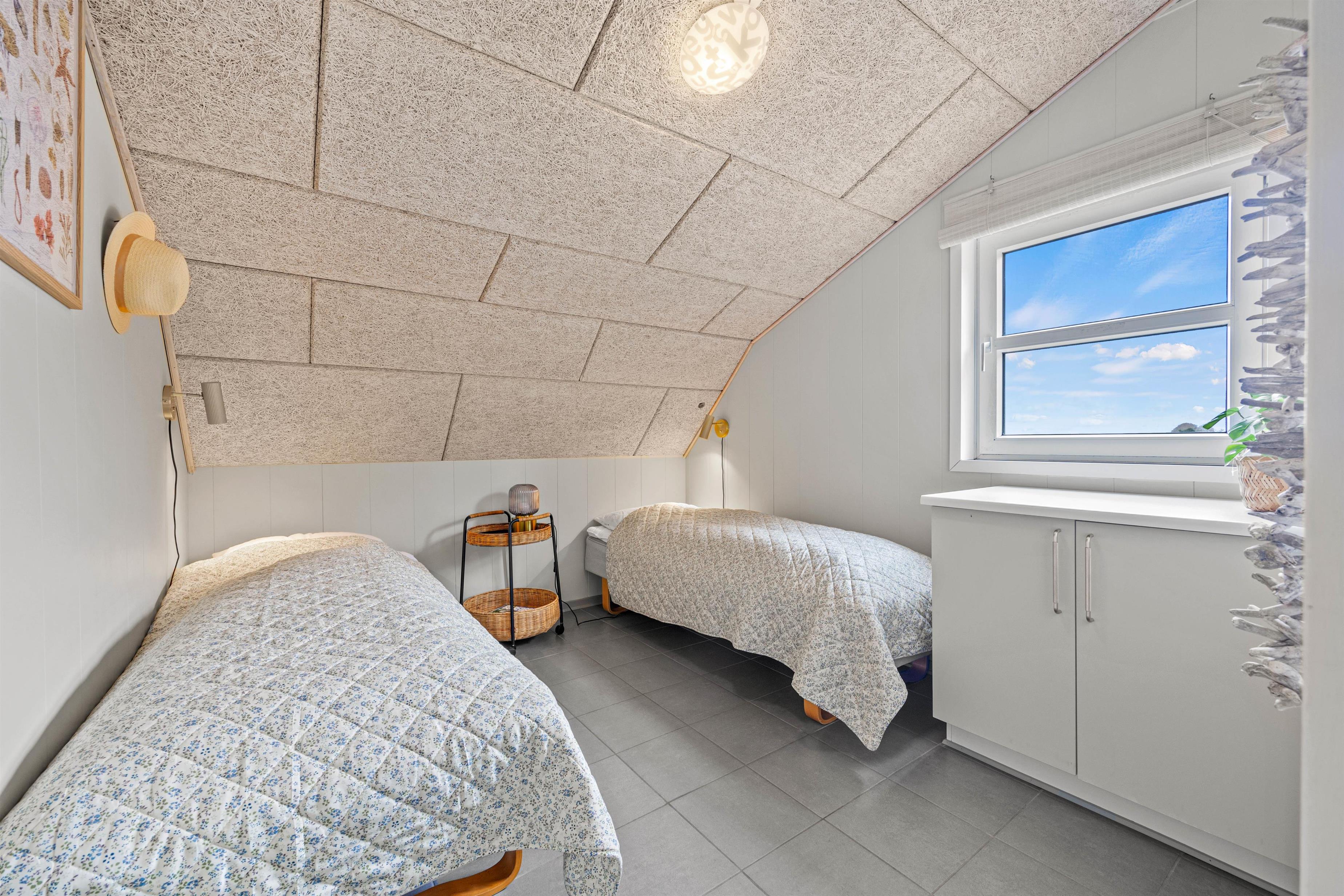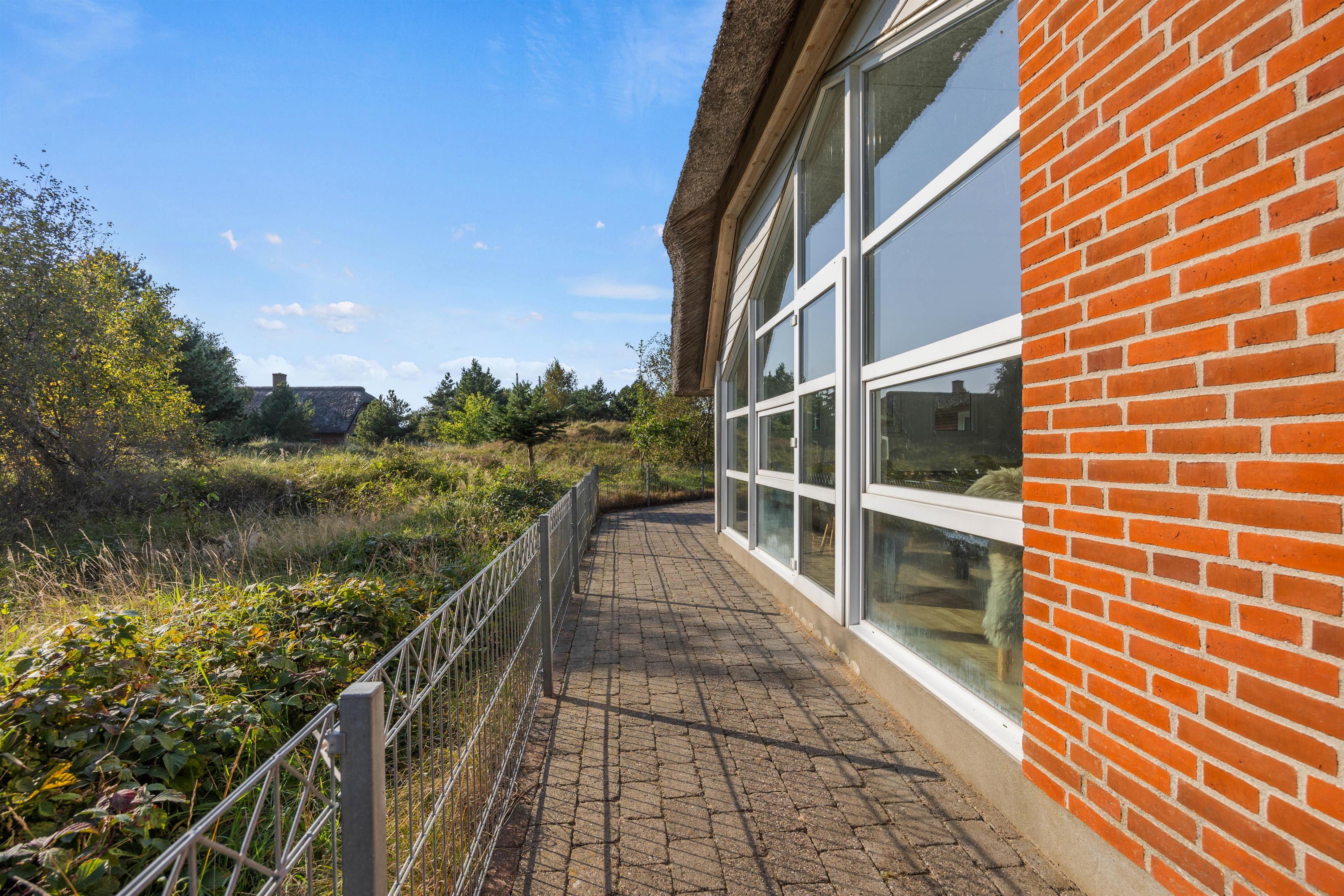 Et superhyggeligt sommerhus med stråtag og masser af plads. Beliggende på en stor naturgrund ligger feriehuset på hele 203 m2. Her er plads til 12 feriegæster og 1 hund. Planløsninger byder blandt andet på 2 badeværelser med gulvvarme, 6 gode værelser samt 1 hyggelige alkove, der også kan anvendes som soveplads. Tre af værelserne er indrettet med dobbeltsenge, 160x200, to er indrettet med en trekvart seng, 140x200, og det sjette er udstyret med to enkeltsenge, 80x200. Her kan I sove trygt og få en god nattesøvn, så I er friske til morgendagens aktiviteter og badning.