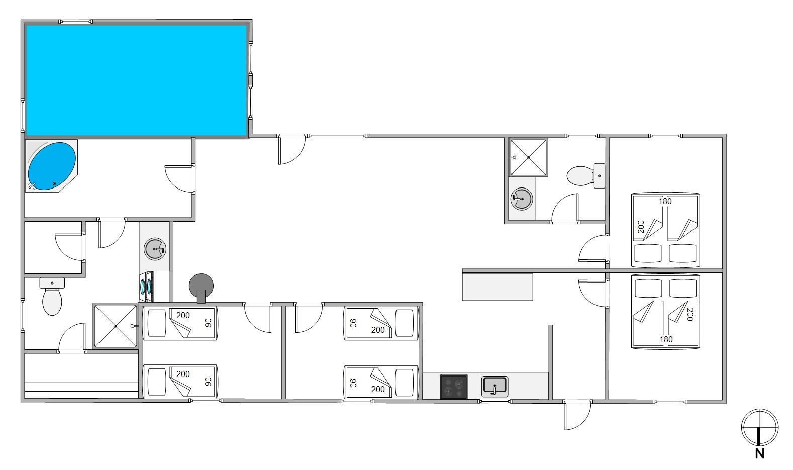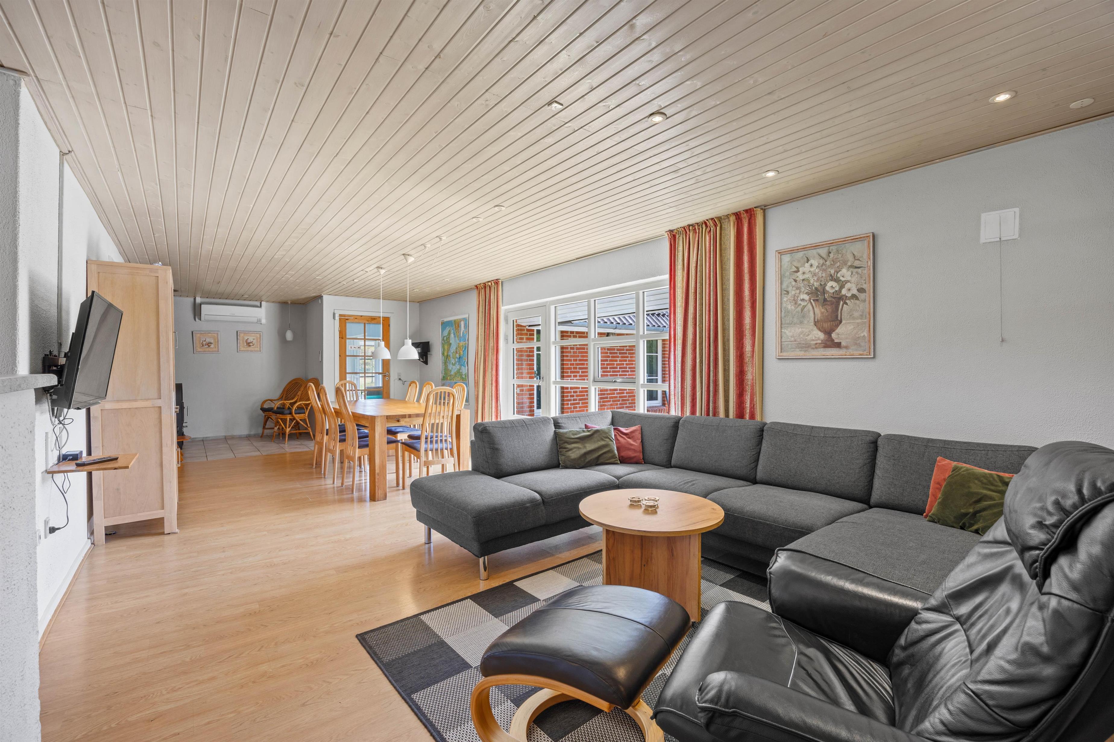 Med plads til 8 personer, fordelt på 4 hyggelige soverum, er dette sommerhus det ideelle valg for både store og små familier. Der er 2 badeværelser, som begge bidrager til komforten, samt en opvaskemaskine og en vaskemaskine, der gør jeres ophold endnu mere bekvemt. Der er også en energibesparende luft-til-luft varmepumpe, der sikrer en behagelig temperatur året rundt.