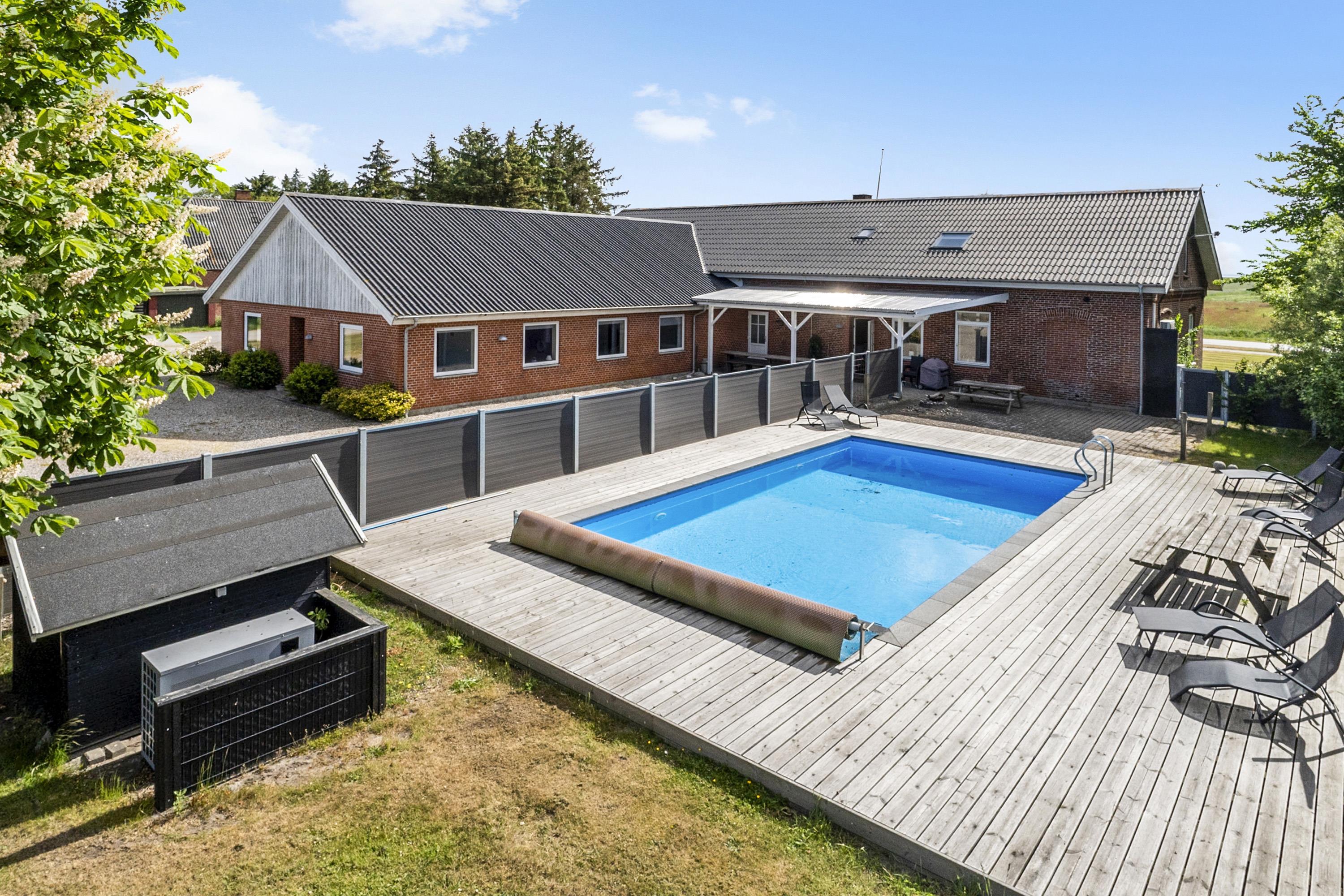 På 509 m² boligareal tilbyder sommerhuset plads til op til 25 personer. 12 soveværelser med komfortable senge sikrer jer gode nætter. Der er også 4 badeværelser og 3 gæstetoiletter. Et af husets absolutte højdepunkter er den udendørs pool, som giver ekstra badeglæde. Poolbillard og bordtennis sørger for yderligere underholdning – ideelt til ægte familiehygge i et stort hus med masser af plads.