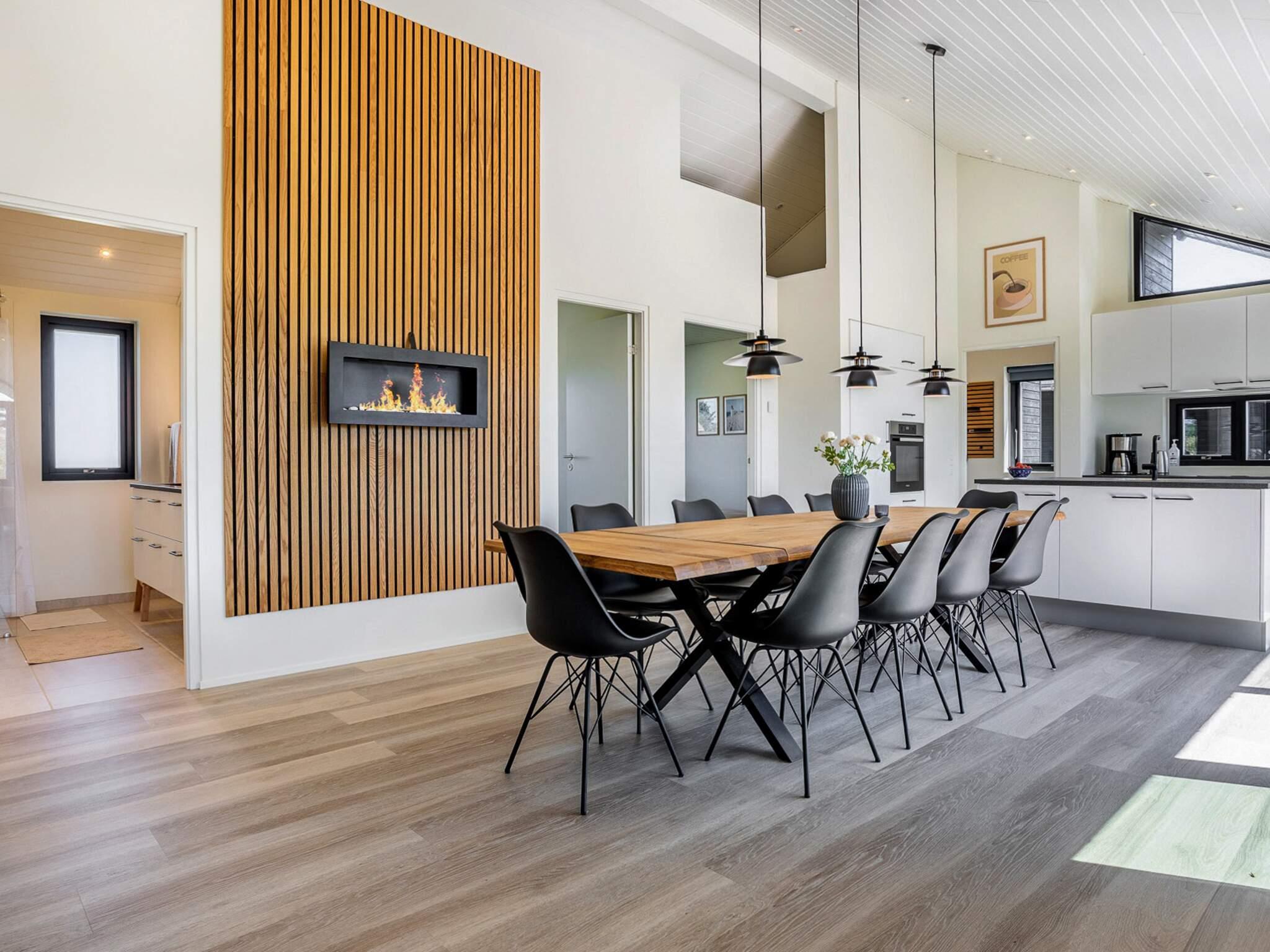 Ude på den store grund har I ligeledes masser af plads og fine forhold til livsnydertilværelsen. Som tillæg til saunaen er der både en udendørs bruser og et vildmarksbad på terrassen, så I kan se frem til en rigtig wellnessseance under åben himmel.” Udespabadet er lukket fra den 01. november til d. 31. marts. Ønsker I at benytte udespabadet i vinterhalvåret, så kan det arrangeres mod betaling DKK 500,00. Dog skal benyttelse af udespabadet i vinterperioden bestilles forud for ankomsten.” Et kæmpestort terrassemiljø breder sig syd og vest. Terrassen byder på både afskærmede, overdækkede og helt åbne områder. Legetårn med klatrevæg, rutsjebane, sandkasse, trampolin (benyttes på eget ansvar/forsikring) og gynger, sørger for underholdning til børnene.