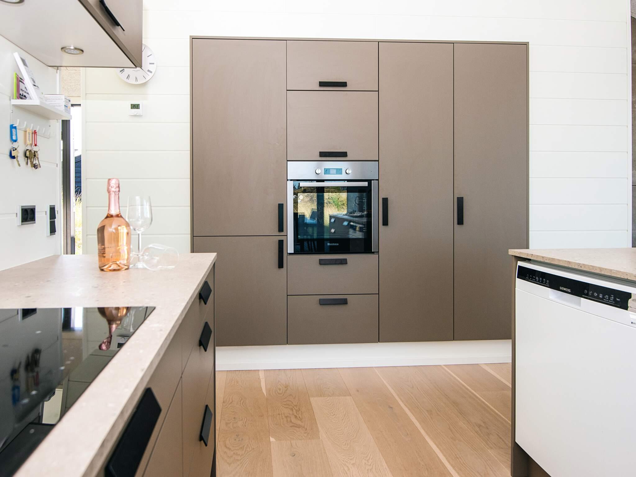 Hjertet i sommerhuset er en stor åben stue med god akustik i forbindelse med det veludstyrede køkken. Der er plads til, at alle kan samles og nyde madlavning, måltider, spil, en god film i husets alkove, eller hvad der ellers er lyst til. Rummet har flere vinduespartier, der lader det fascinerende nordjyske lys strømme ind, og på varme dage kan du åbne ud til terrassen.