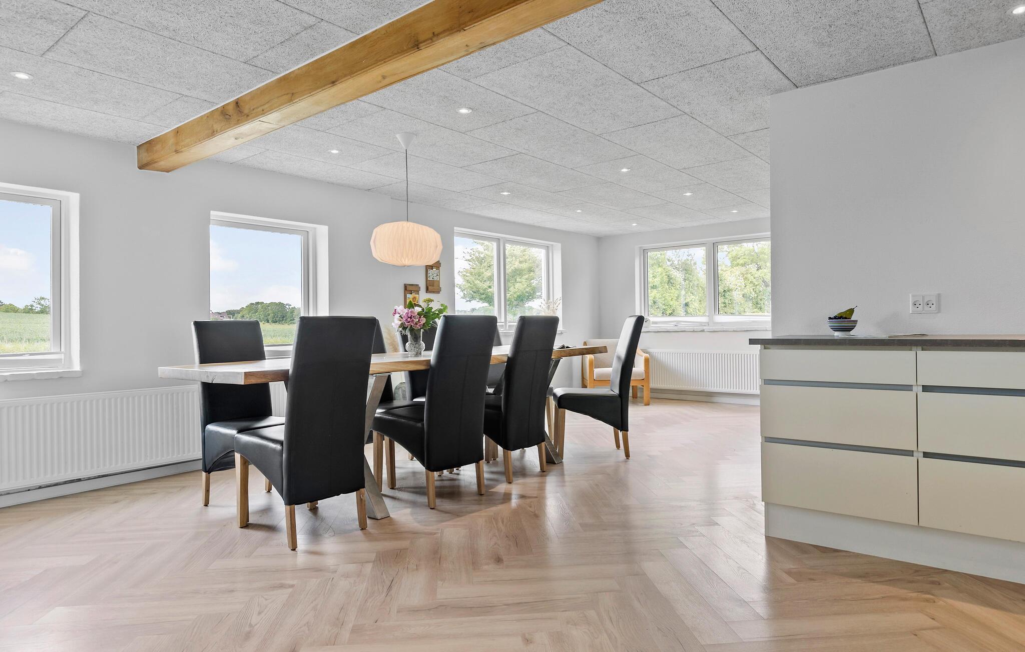 Omgivet af marker og enge byder dette hus jer velkommen med moderne og komfortable møbler, hvor I hurtigt kan slappe af. Slap af i sofaen med en kop kaffe, slap af med en interessant podcast eller stream den seneste serie om aftenen.