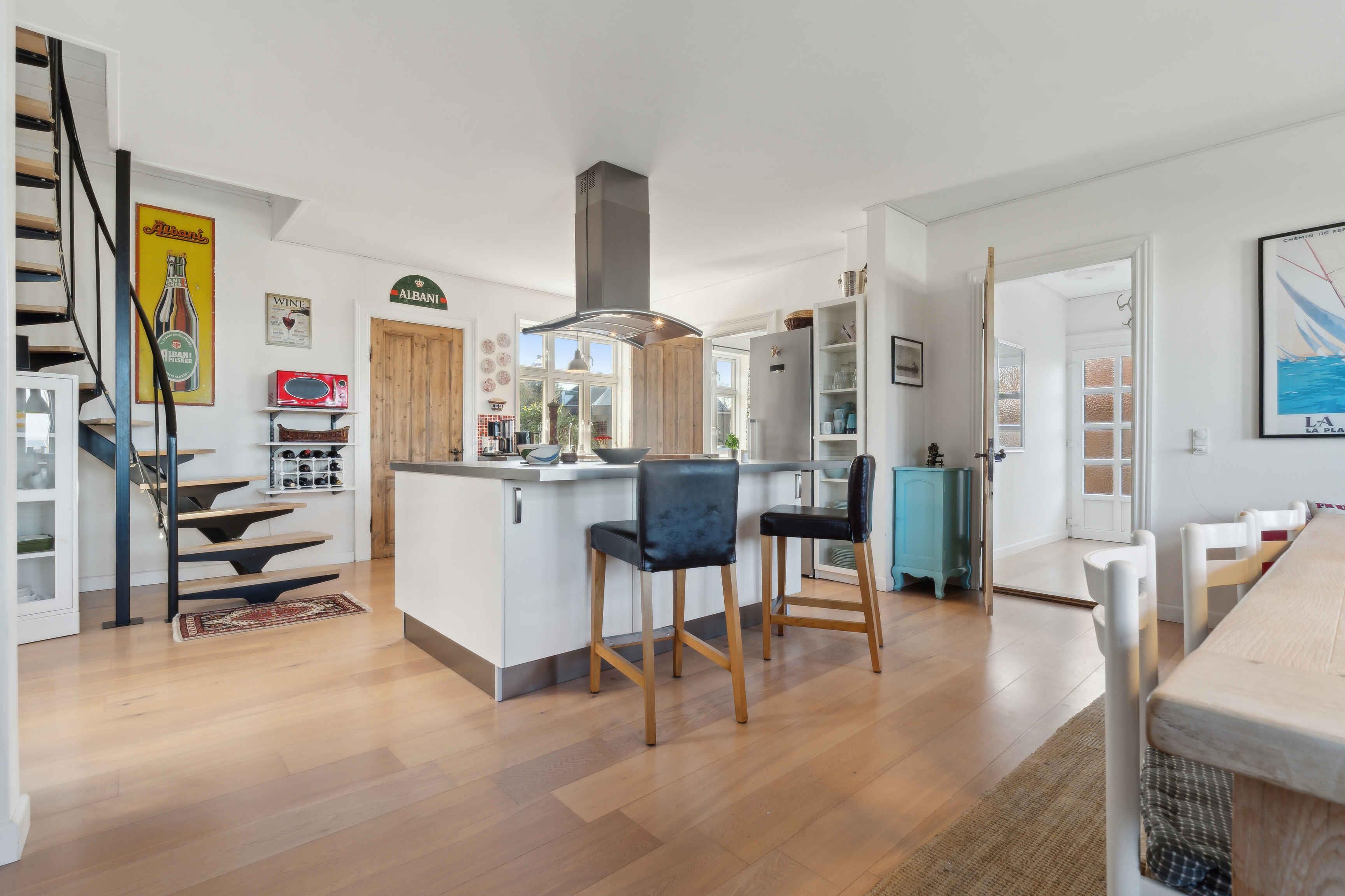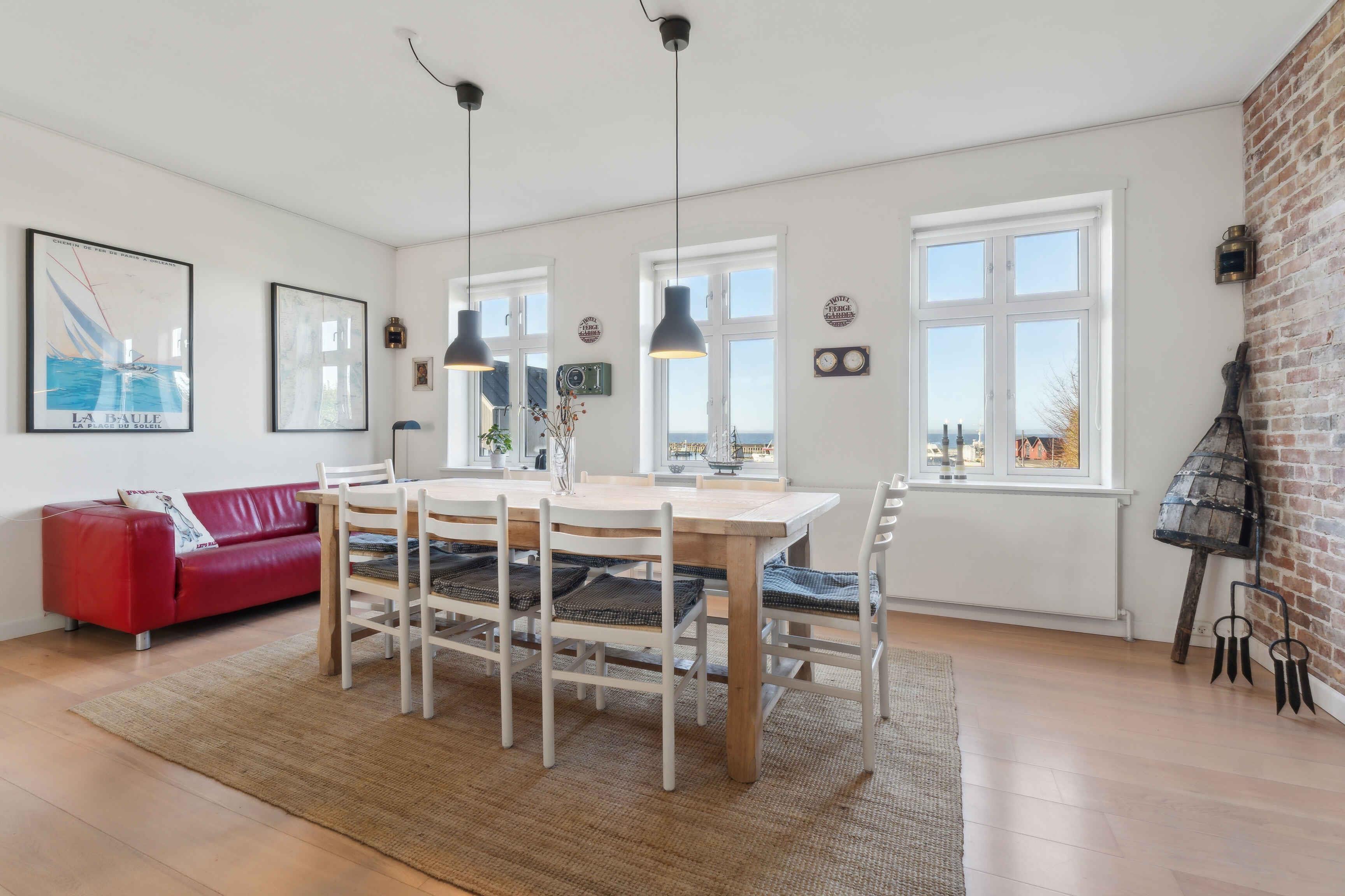 Dette sommerhus på 160 m² fordelt på to plan tilbyder en unik ferieoplevelse tæt på havet. Med fire soveværelser og plads til otte personer er huset ideelt til både familier og grupper. Huset er beliggende blot 50 meter fra vandet og byder på en fantastisk panoramaudsigt over havet fra første sal. Området har en særlig maritim atmosfære, takket være det charmerende havnemiljø med lystbåde og fiskefartøjer. På havnen finder I en badebro med sauna, perfekt til afslapning efter en svømmetur. Om sommeren er der livemusik i weekenderne og et marked hver tirsdag. Uge 29 byder på den populære frikadellefestival. Huset har en indhegnet grund på 433 m² med en hyggelig gårdhave og et vildmarksbad. Her kan I nyde 38 graders varmt vand, mens I ser ud over havet. Hvis vejret driller, er der en overdækket og lukket terrasse. Der er desuden gode parkeringsmuligheder med carport. Op til to husdyr er velkomne. Husets køkken er veludstyret og forbinder til en rustik spiseafdeling med New York-væg. Her er der plads til hyggelige måltider og samvær. På første sal er en hyggelig stue med brændeovn og en enestående udsigt. Stuen rummer også et billard- eller poolbord, der giver mulighed for underholdning. Der findes to toiletter i huset, hvoraf det ene er med bad. Bryggerset er udstyret med både vaskemaskine og tørretumbler. I nærheden er en dejlig sandstrand og flere skove, der indbyder til vandreture og løb. Området er ideelt for naturelskere og dem, der søger ro og aktivitet. Huset er renoveret med maritim inspiration og byder på moderne faciliteter. Inden for 1000 meter finder I dagligvarebutikker og 3-4 spisesteder, der serverer lokale specialiteter. Dette sommerhus kombinerer moderne komfort, sjove aktiviteter og en fantastisk beliggenhed. Det er et oplagt valg for dem, der ønsker en ferie i smukke omgivelser tæt på natur og hav.