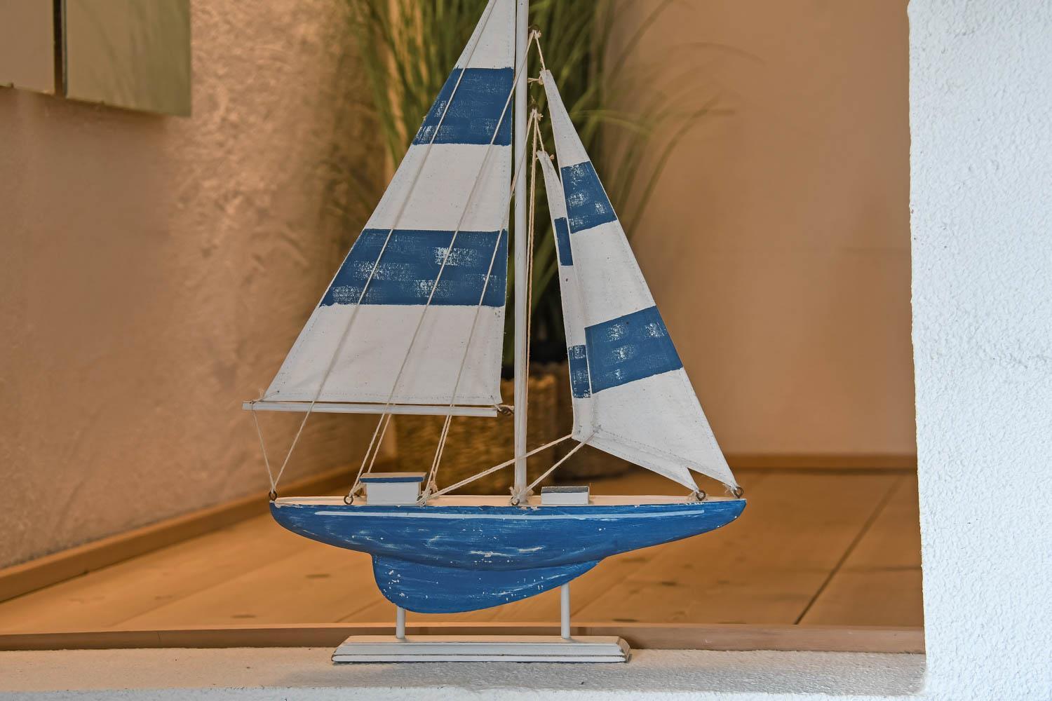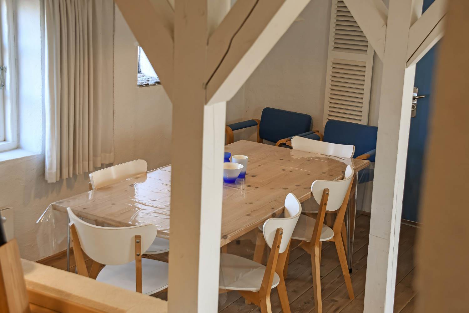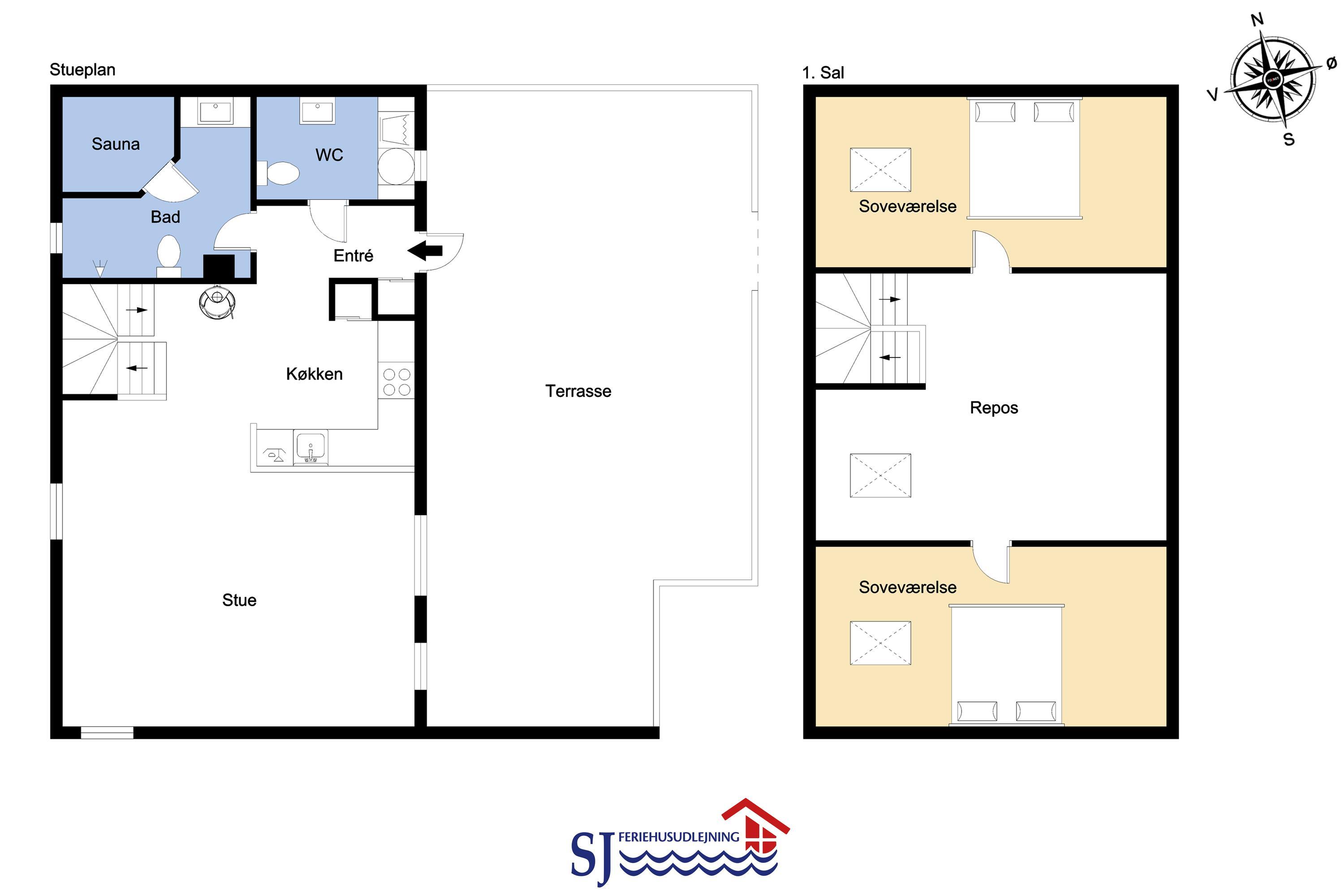 Lejligheden er lyst og charmerende indrettet. På 1. sal findes tre soveværelser: ét med dobbeltseng og to værelser med hver to enkeltsenge. Alle værelser har smuk havudsigt, så I kan vågne op til lyden af bølgerne og udsigten over Vesterhavet.