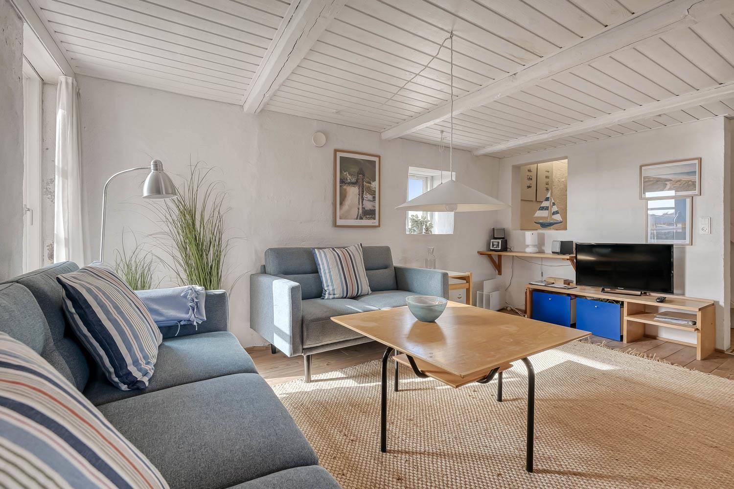 Hyggelig ferielejlighed i to plan – havudsigt fra alle rum.