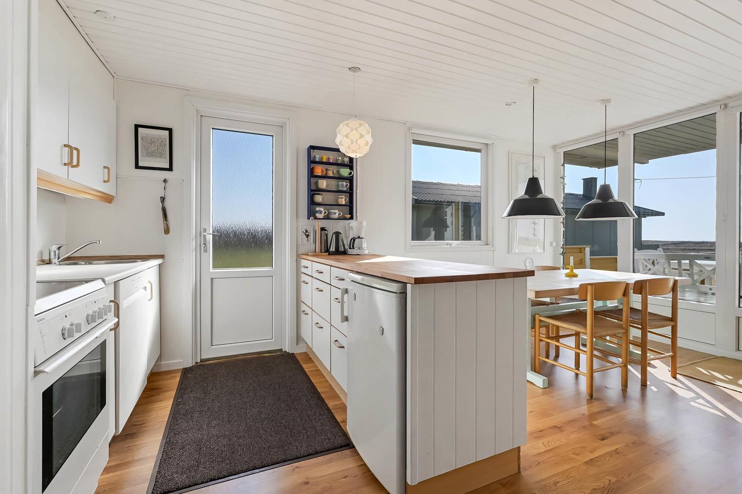 Huset er lyst og smagfuldt indrettet med kombineret opholdsstue og køkkenhjørne, som skaber en hyggelig ramme for ferien. Opholdsstuen er møbleret med både læder- og polstermøbler, Smart-TV med danske og tyske programmer samt mulighed for streaming af TV, radio og apps. Den hyggelige brændeovn og varmepumpen, skaber en varm og stemningsfuld atmosfære, mens I nyder udsigten til Vesterhavet.