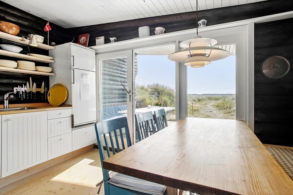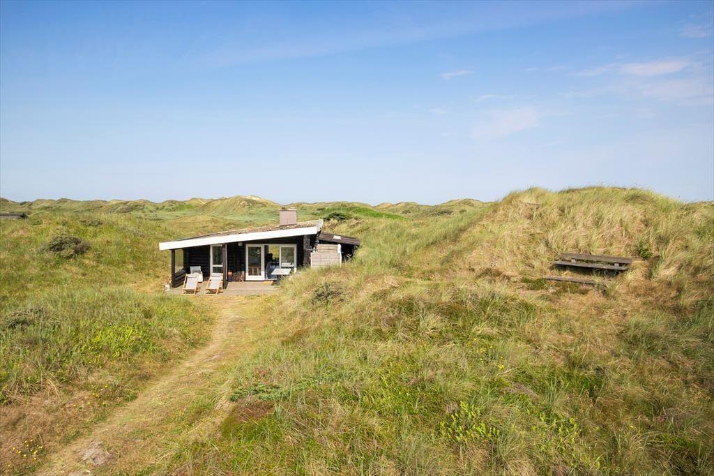 Dette charmerende bjælkehus ligger bare 180 meter fra Vesterhavet på en stor naturgrund i et bølgende klitlandskab. En beliggenhed som denne er mildest talt helt enestående, og det er et perfekt udgangspunkt, hvis I drømmer om ferieliv i roligt tempo langt fra hverdagens rutiner.