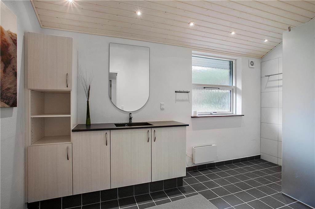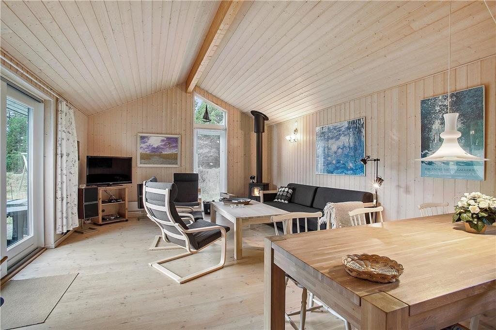 Allerede udefra står det klart, at sommerhuset præsenterer sig på pæn og velholdt vis, og det er også tydeligt inden døre, hvor I kan brede jer på hele 110 lyse og velindrettede kvadratmeter. Ikke mindst bryggerset og det største af de to badeværelser er i top, for begge rum blev nemlig grundigt moderniseret i 2019. Når I vil tilbringe tiden sammen, kan I mødes i opholdsrummet for at spille brætspil ved spisebordet, slappe af i sofaafdelingen nær brændeovnen eller for at hygge jer med madlavningen i det åbne køkken. Med Chromecast i stuen kan I nemt streame jeres yndlingsfilm og -programmer på fladskærmen – og skal børnene have lov til at starte morgenen med at se DVD-film, er der mulighed for det i det ene værelse. I alt er der tre soveværelser; Ét med dobbeltseng og to med enkeltsenge. Bemærk at det ene værelse er et gennemgangsrum til bryggerset.