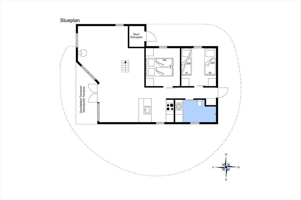 På den 1.604 m2 store grund har I god plads til leg og kolbøtter på græsplænen, men det er nu ganske oplagt at smutte over på det store og helt igennem herlige fællesområde, når der skal brændes energi af. Midt i Tranum Ferieby – lige på den anden side af vejen – breder det grønne fællesområde sig med legeplads, beachvolley, minigolf, multibane, fodboldmål og meget mere. Der er også en grillhytte, med mindre I foretrækker at grille hjemme på sommerhusets sydvendte og delvist overdækkede terrassemiljø.