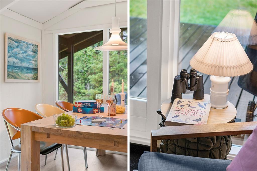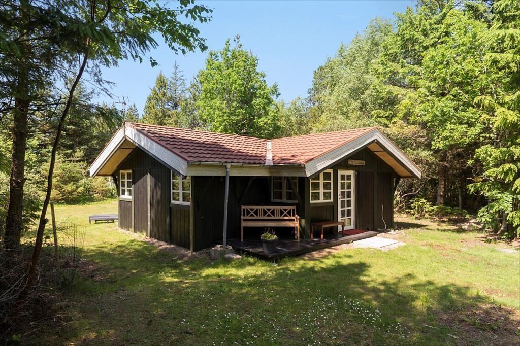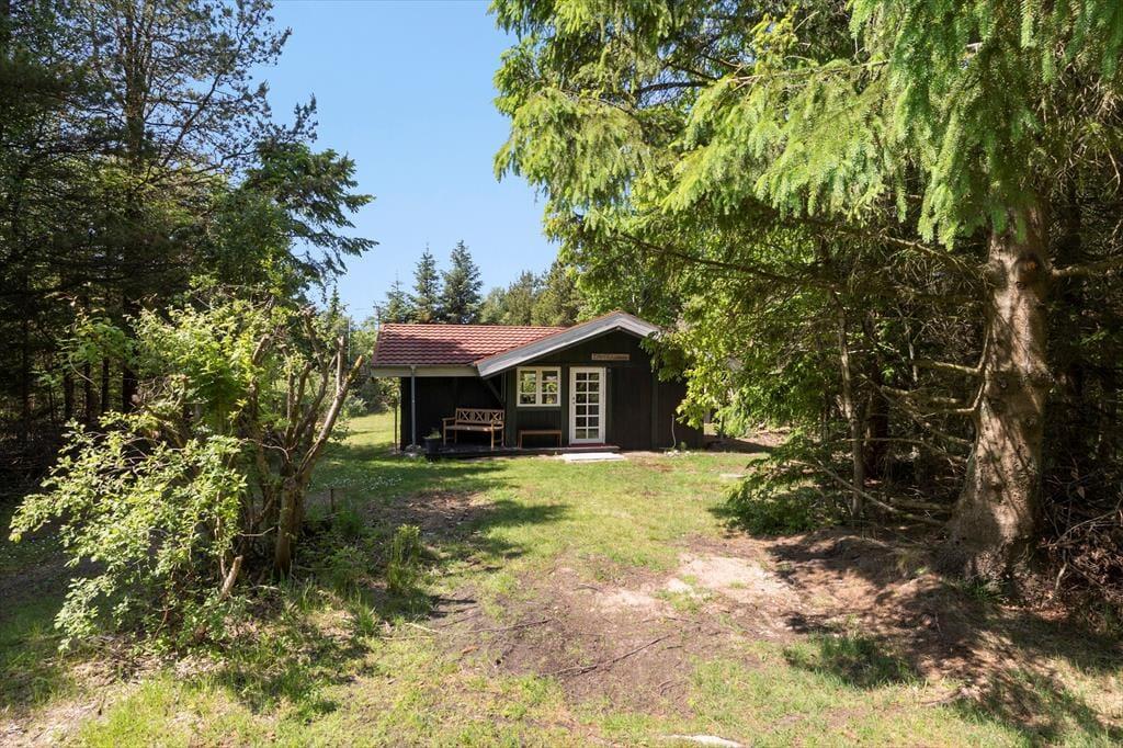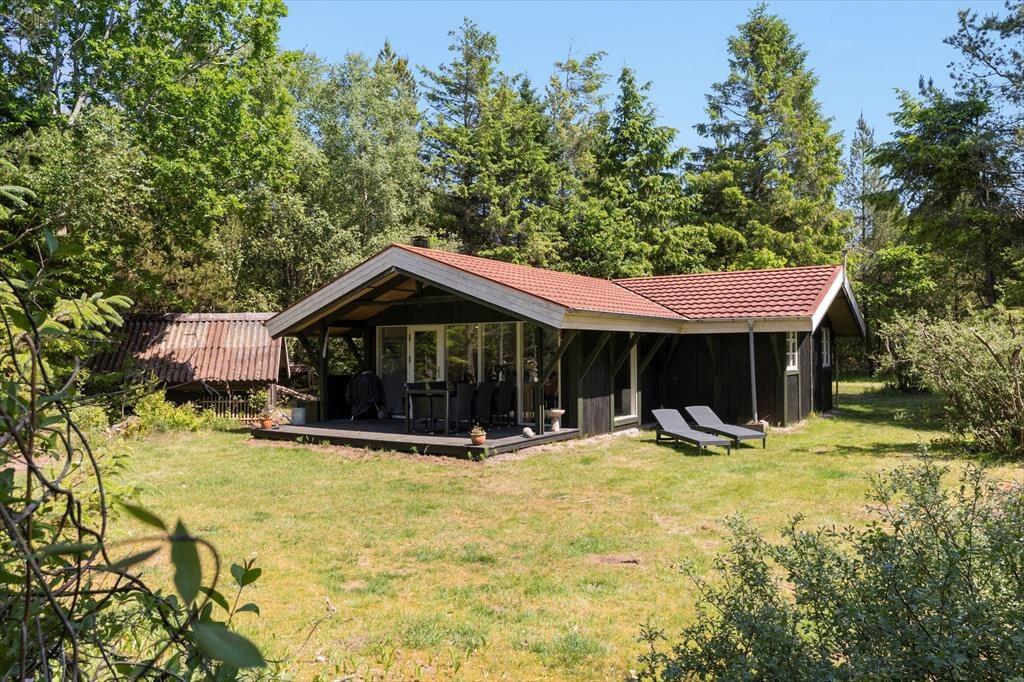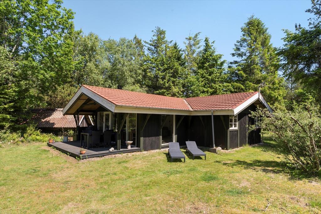 Den lukkede og indhegnede have er en stor fordel – især hvis du har hund med på ferie. Her kan du roligt lade både børn og firbenede familiemedlemmer lege frit. Terrassen ligger godt i læ og inviterer til afslappede feriedage med grill, solbadning eller en stille morgenkaffe under åben himmel. Om aftenen kan du nyde roen og lydene fra naturen, mens solen går ned bag træerne.