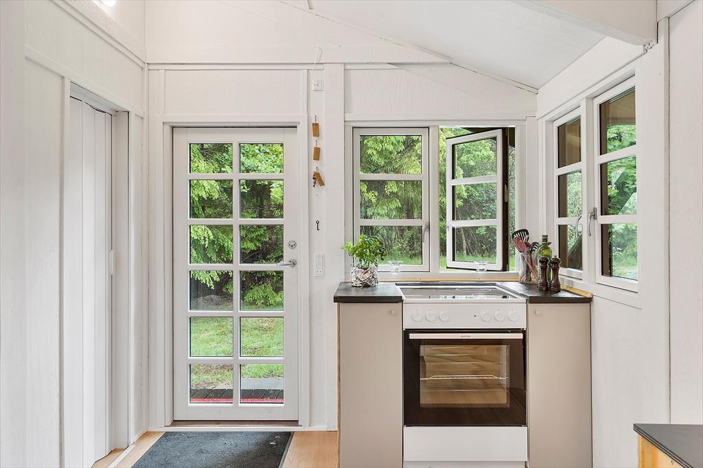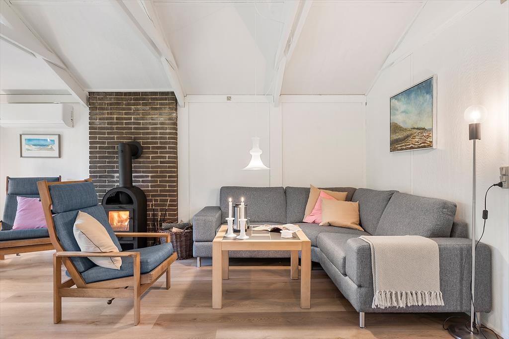 I dette nyrenoverede sommerhus fra 2025 får du en lys og moderne base for ferien – med alt, hvad du har brug for, pakket ind i 65 veludnyttede kvadratmeter. Indretningen er enkel, moderne og hyggelig, med åbent køkken-alrum og store vinduespartier, der lader dagslyset strømme ind. Her er god plads til fælles stunder i sofaen med spil, snak eller en god film via Chromecast. Brændeovnen sørger for ekstra hygge på kølige dage, mens varmepumpen bidrager til et stabilt indeklima uanset vejret – både praktisk og energivenligt.